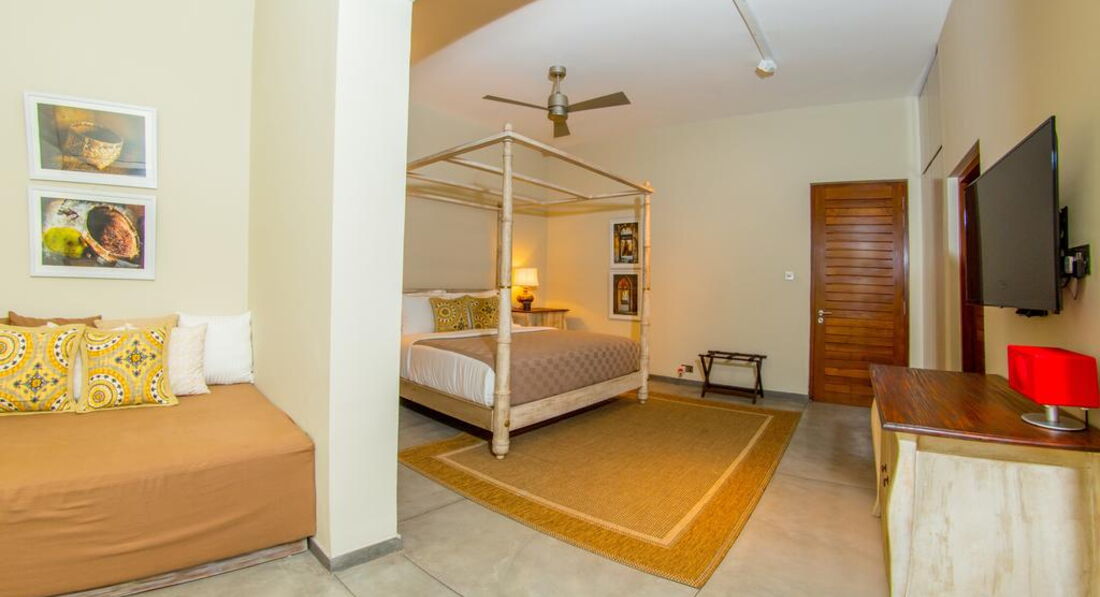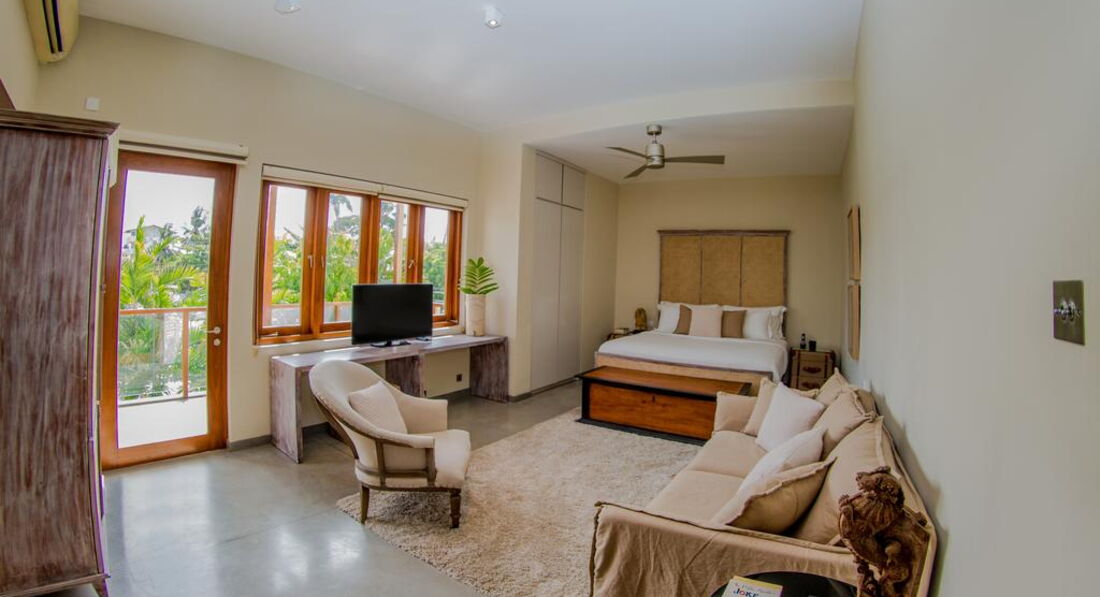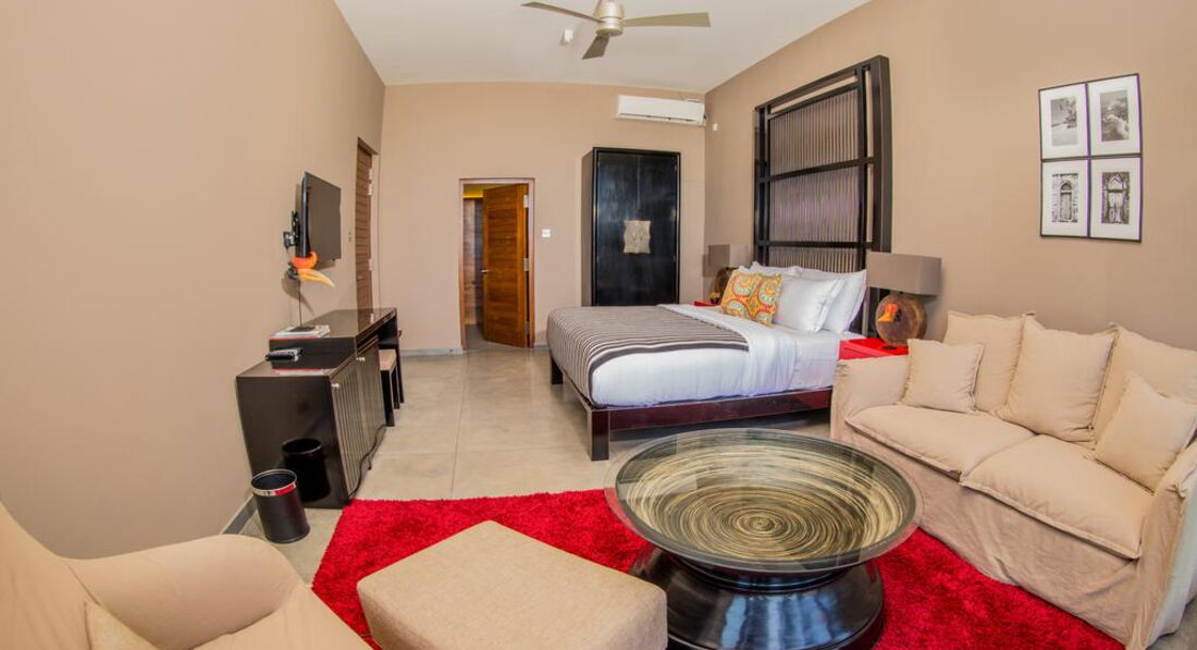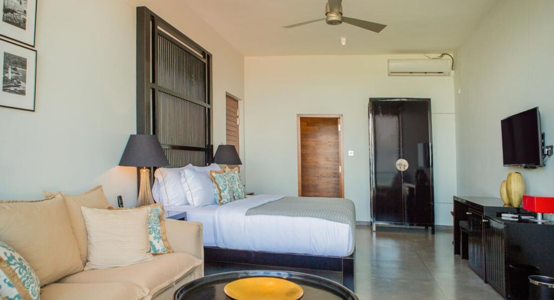 Типи номерів: • 1 Standard Double Room (28 кв.м., макс. 2 дорослі + 1 дит.) - спальня, ванна кімната, вид на околиці. • 4 Superior Double Room (37 кв.м., макс. 2 дор. + 1 дит.) – спальня, вітальня, ванна кімната, балкон, частковий вид на море. • 4 Ocean View Deluxe (43 кв.м., макс. 2 дор. + 1 дит.) – спальня, вітальня, ванна кімната, балкон, вид на море. • 1 Executive Suite (58 кв.м., макс. 2 дор. + 1 дит.) – спальня, вітальня, ванна кімната, балкон, вид на море.У номері: • душ • халат • фен • індивідуальний кондиціонер • телевізор • Wi-fi • телефон • електричний чайник • міні холодильник • питна вода (1 л/день) • набір для приготування чаю/кави • прасувальна дошка та праска • сейф • прибирання номерів: щоденно • зміна білизни: щодня