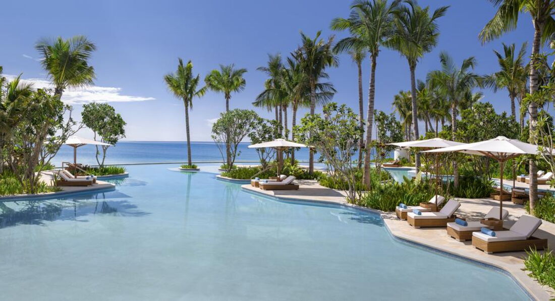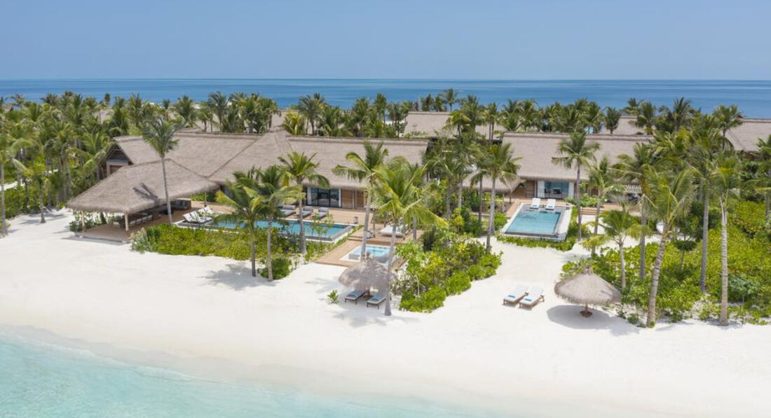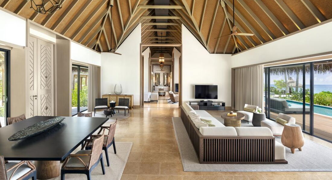 • 2 3 Bedroom Grand Beach Villa with Pool (1023 м2; макс. 8 чол.). Берегова вілла з трьома спальнями (дві з ліжками king-size; одна – з окремими twin/ третя спальня розташована окремо від усього комплексу), вітальнею, обідньою зоною, невеликою кухнею. Тераса з обідньою зоною та зоною для відпочинку, два приватних басейни