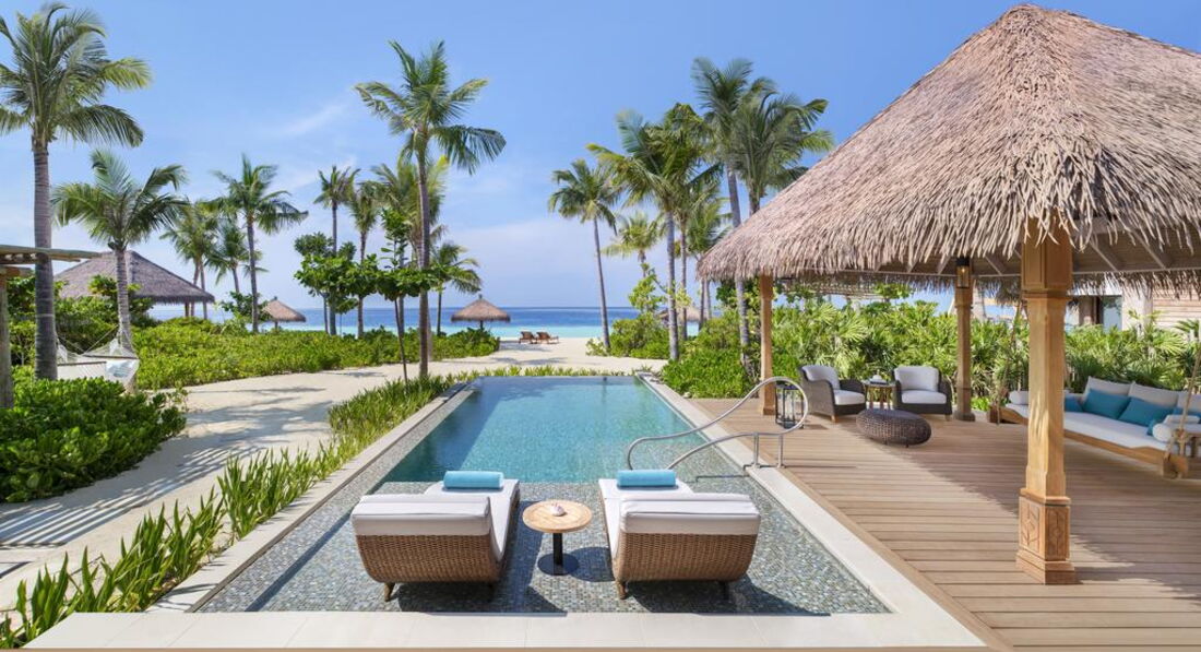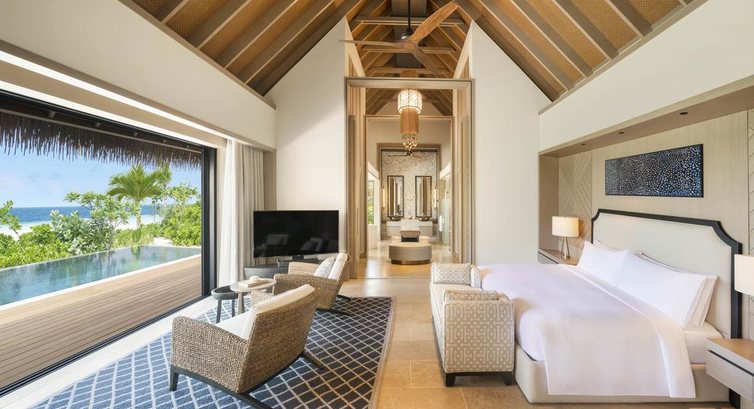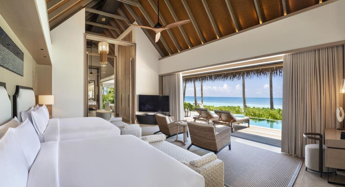 • 2 2 Bedroom Grand Beach Villa with Pool (626 м2; макс. 6 чол.). Берегові вілли з двома спальнями (одна з ліжком king-size; інша – з роздільними twin), вітальнею з обідньою зоною та кімнатою для прислуги. Ванна кімната, тераса з приватним басейном (15 х 4 м) та обіднім павільйоном, диван-гойдалка, гамак. Прямий вихід на пляж