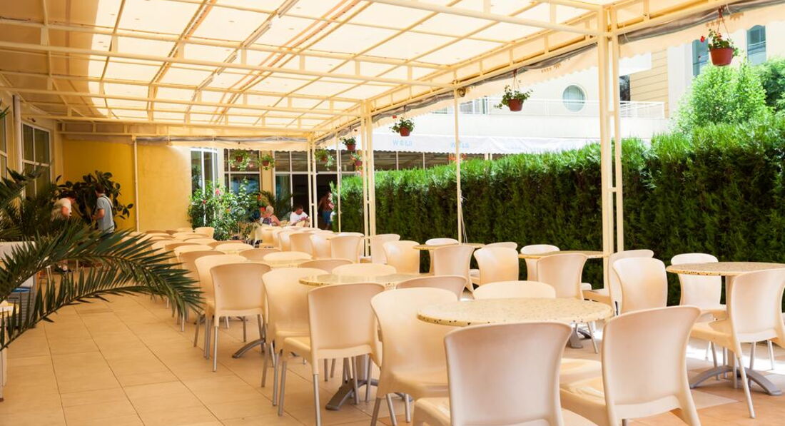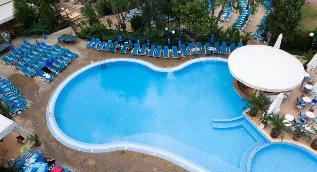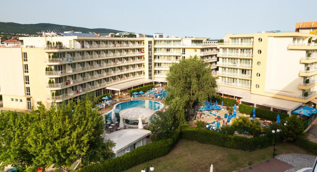 Отель очень достойный, 4* вполне соответствует, именно 3-я линия от моря!! (если кому важно), но есть свои плюсы - на 1ой и 2ой очень шумно!))), питание - вкусно и качественно, алкоголь очень приличный, кофе (из кофемашины хороший!) и чай есть всегда, Персонала много - всё убирают, трут, вообщем чисто!!! Управляющая отеля, очень милая женщина, всегда на территории и следит за отелем, это приятно! Хорошая команда анниматоров, ходили на болгарскую ночь - хорошо сделали - молодцы и на комеди клаб - посмеялись от души)) - воообщем, молодцы ребята! Море по прямой, конечно, 300 метров, но по прямой не пройти - всё застроено отелями, поэтому минут 10 уходило, но я была со взрослой дочерью, мы любим пешочком ходить)) на наше время прибывания и в отеле, и на пляже, и море - всё было , если без придирок, чистенько. Мы жили в новом корпусе на 5 этаже ( большой балкон и собственная сплит-система). Сам отель порадовал, удобно расположен, авт. остановка рядом. Сам отель рекомендую для детишек от 6 лет и старше, с детишками помладше здесь будет трудновато с развлечениями и шумновато, т к много иностранной очччееенннььь шумной молодежи.