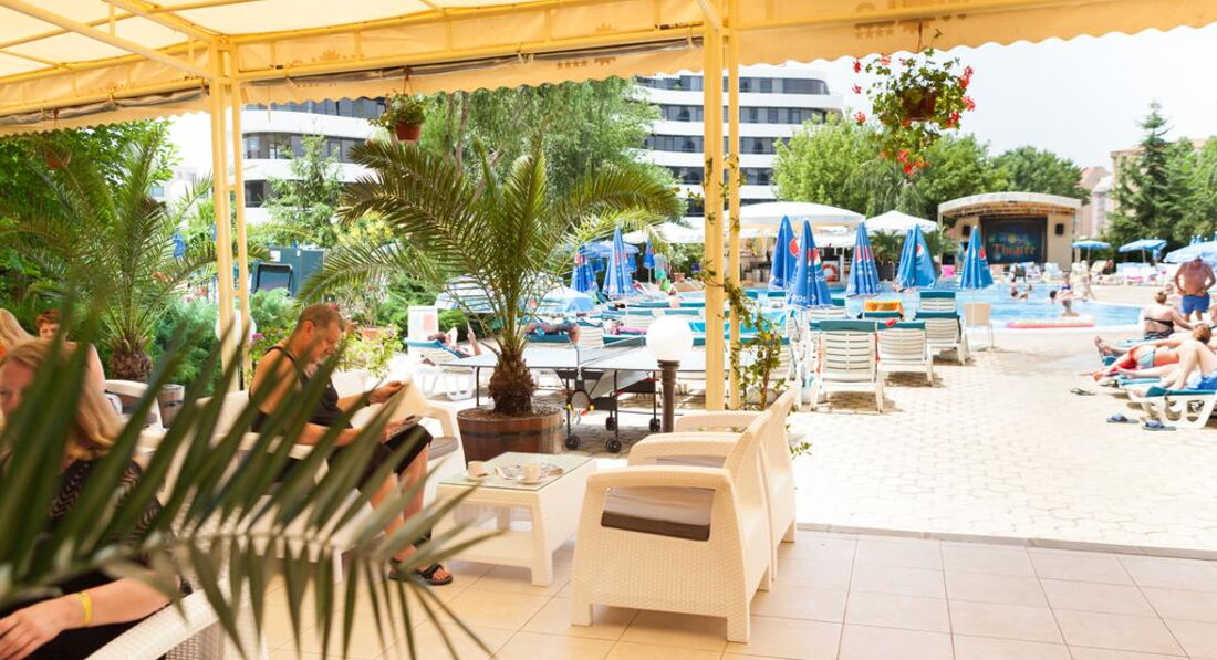 Питание надоело на третий день, т.к. одно и тоже (но не плохое). Но дешево в кафе, поэтому брать все включено не вижу смысла. В ресторане посидели на двоих на 400 рублей. Анимация :-(....... мне лично не понравилась. Сотрудники рецепшена, лобби бара и ресторана отличные, а вот горничные убирались плохо. Чаевые поэтому не получили. Вообще солнечный берег тусовочный, поэтому ехать с компанией супер. Хотя нам скучно тоже не было. Советую взять экскурсию Пловдив-софия-Рилский монастырь-Ванга (2 дня). Обязательно побывайте в Бургасе, там вещи дешевые. Такси дорого, ходят рейсовые автобусы, расписание на каждой остановке написано. Дешевые фрукты, оливковое масло, качественная колбаса в супермаркетах. Кто едет не все включено, можно взять кипятильник, пригодится. Вода из под крана питьевая, отличная. Советую посетить салон старинного фото (вас передевают, тематику выбираете сами), конечно не совсем дешево, но дешевле на порядок, чем у нас. А память останется. Море безопасное для тех, кто не умеет плавать и детям, но пляжи все общественные, поэтому с собой большие полотенца берите, т.к. шезлонги и зонтики платные. Алкоголь в отеле нормальный, а в магазинах ещё и дешевый. В бассейне обязательно покупайтесь, т.к. это единственный бассейн в минеральной водой. Отличного отдыха Вам!!!!!!!!!!!!!!!! Хочу ещё раз съездить