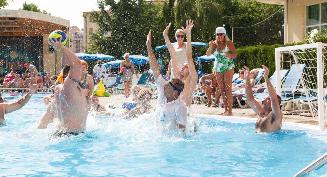 В отеле с утра до вечера работала ЗАМЕЧАТЕЛЬНАЯ команда аниматоров из 10человек. Они проводили различные игры для туристов, гимнастику, акваэробику, уроки сальсы, зумба и др. Вечером были шикарные шоу. Жаль на болгарский вечер мы так и не попали(((