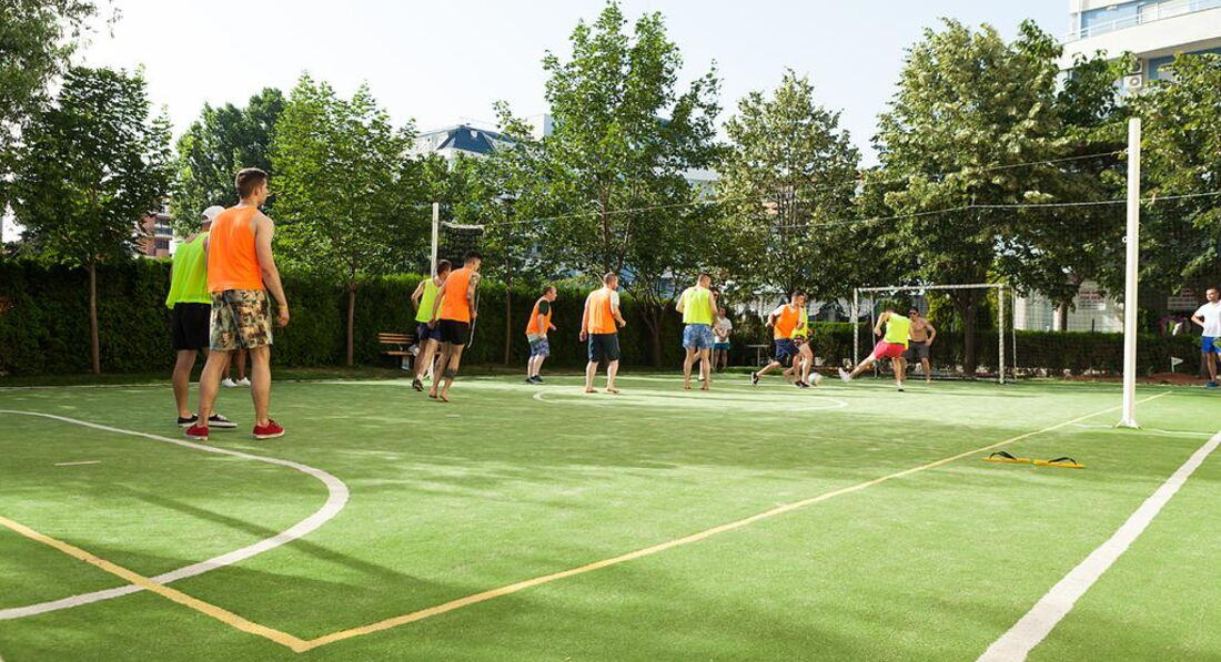 Мы отдыхали в этом отеле в начале июля 2016 года. Начнем с территории. Бассейн хороший, типа с минеральной водой. Территория маленькая, по гулять не где, но и нет смысла. В принципе нормально. На территории есть детская площадка, не большой стадион для футбола и волейбола.