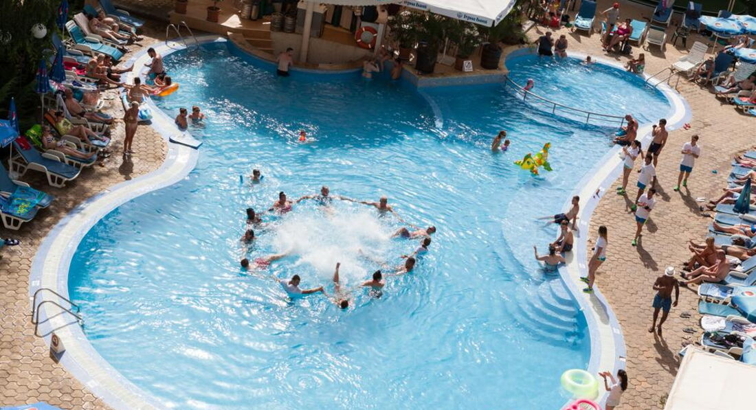 Большой бассейн на территории с двумя отделениями. Места всегда хватала. Днем была анимация: акваэробика, потом играли в водное поло или волейбол. Каждый день у бассейна одно и тоже. Для детей анимации маловато. С детками я не видела чтоб занимались. Хорошая детская комната. Много игрушек. На детской площадке 2 горки, песочница и домик. Качель нет. Это плохо. Вечером анимация была интересная и каждый день разная, но для взрослых.