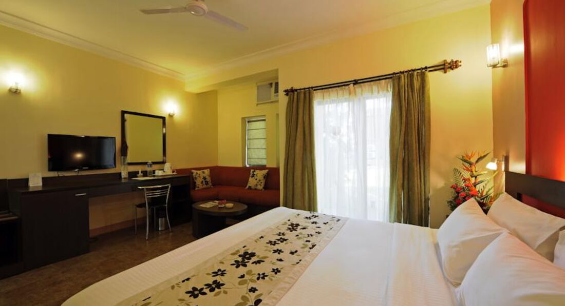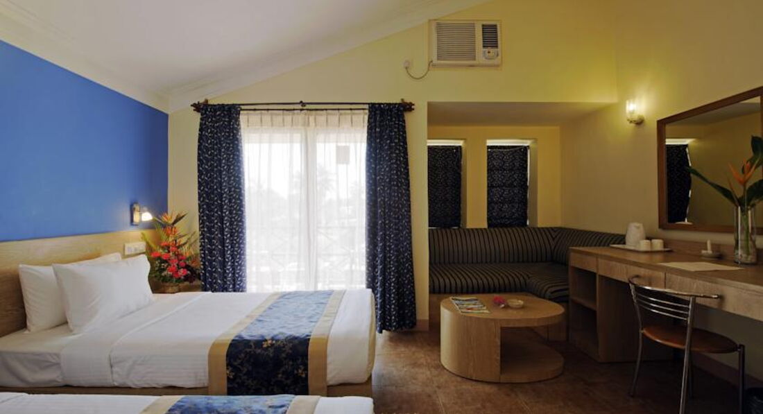Camdolim. Отель расположен в посёлке 5-10 минут ходьбы до магазинов и кафе. Пляж расположен в 200 метрах от отеля. Стандартные номера были обновлены. Номера De luxe studio староватые и требуют обновления. Территория отеля небольшая, не очень уютная. Сейф в номерах бесплатно, Wi-fi в лобби бесплатно.