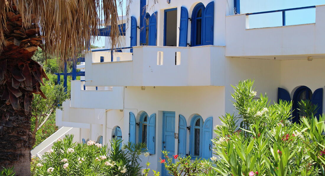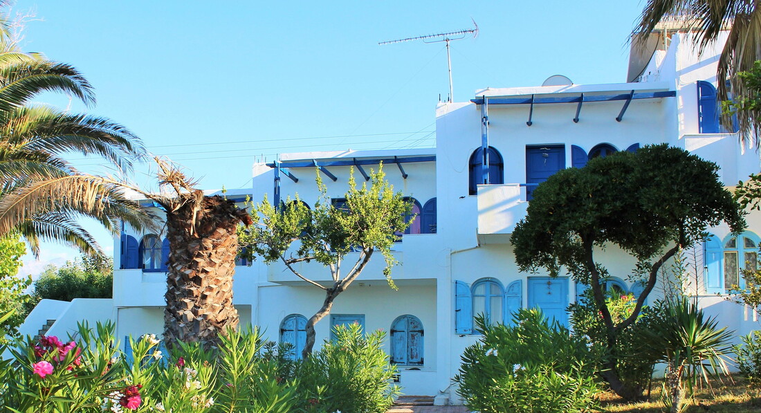 Комплекс студія White–Blue Studios знаходиться близько до сіл Агія-Марина і Платаніас. До міста можна дістатися автобусом, зупинка знаходиться в безпосередній близькості від готелю. Поруч розташована автомагістраль, що забезпечує легкий доступ до околиць.