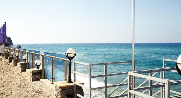 Говоря про пляж, это для нас не стало сюрпризом. Начитавшись предыдущих отзывов, мы лишь из праздного любопытства заглянули на пляж отеля (3-хярусный,со спуском к морю по очень крутой лестнице, после которой вы оказываетесь на скользких камнях) и сразу потопали на соседний дикий пляж, где обалденный вход в море: песок+очень мелкая галька.Там мы и плавали. Не знаю точно, но из-за особенностей рельефа или просто из-за конца сезона за период нашего пребывания море почти всегда было неспокойным.