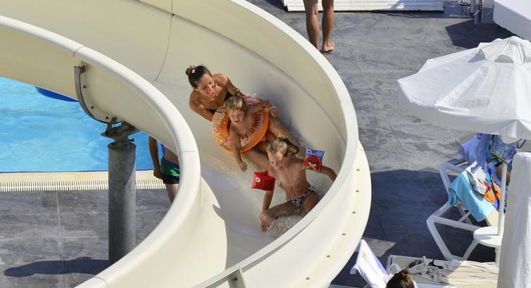 Пляж. Отдельно останавливаться не буду – все подробно (даже я бы сказала «слово в слово») было описано в предыдущем отзыве. Не понравились постоянные волны. Кто был в Кемере – меня поймет. Вечером вода была грязноватой. 80% времени, отведенного на купания, мы находились возле бассейнов с горками.