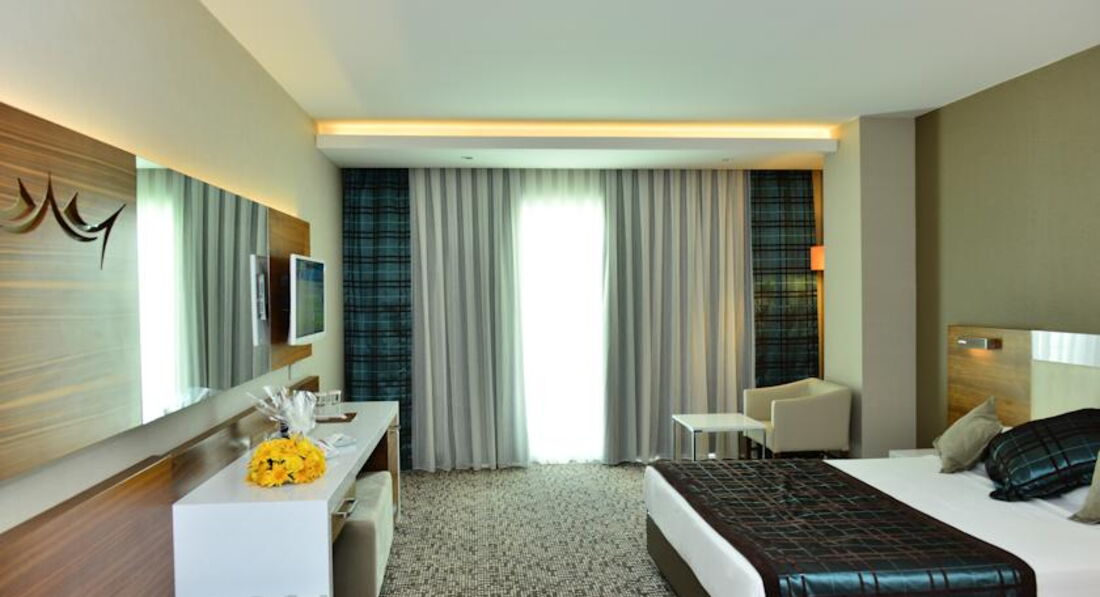 Отдыхали в отеле с 06 по 13 мая 2015 года. В отель приехали в 11 часов. Были настроены ждать заселения в 14:00. Каково же было наше изумление от того, что заселили нас сразу и без всяких доплат. При этом встретили нас с улыбками и с угощениями (предложили чай и сладости). Ну просто невозможно было не улыбаться в ответ. После этого проследовали в номер. Нам достался 3015. Все супер!!! ( прошу мне верить,так как туристы мы заядлые). Мебель вся новая и очень удобная. На ящиках стоят доводчики, мелочь,но приятная. Кондиционер работает в различных режимах, сантехника в идеальном состоянии. Очень удобные (возможно даже ортопедические) матрасы на кроватях. Все чистенько аккуратненько. Территория отеля небольшая но очень ухоженная. В отеле, кстати, полотенца бесплатно, хотя на многих сайтах указано,что платно. Так же обращаю Ваше внимание на то,что в отеле бесплатный вай фай (тоже где то читал, что платный). Бассейн чистый, горки работают по расписанию. Пляж небольшой,но очень уютный. Есть узенький вход с берега, но мы предпочитали с пантона. Вода просто прекрасная. Можно купаться без напряжения ( к концу отдыха думаю градуса 23 ℃ была точно.) Единственный недостаток в том, что рядом строиться отель и немного шумновато, но это не вина отеля, к тому же стройка заканчивается и уже летом отель начнет функционировать. Питание вполне приличное. Большой выбор, голодными не останетесь. На мой взгляд не очень вкусно готовят рыбу, а мясо готовят отлично. Но это на любителя.... гораздо важнее то, какой сервис и какое отношение к гостям отеля. Особое СПАСИБО хочется сказать официанту Кадиру! Добрый парень с отличным чувством юмора! Отличное обслуживание. Приведу пример.... в первый день отдыха пошел сам наливать себе кофе, ко мне с улыбкой подходит официант (тот самый Кадир) и говорит:"Если вы сами будете это делать, то зачем мы здесь нужны?" После этого за напитками не ходил, все приносили, только пожелай. В общем ни о чем не думали, отдыхали с комфортом! Больше позитива и улыбок и все это к Вам вернется вдвойне от гостеприимных турков. Теперь хочется сделать маленькое предостережение.... Мы в путешествиях никогда не покупаем экскурсии у официального туроператора. Сделали так и в этот раз в агенстве "Али баба". Оно недалеко от отеля находится. И остались очень недовольны. Экскурсия в Каньон. В итоге нас не привезли в два места, которые указаны в рекламе, и у нас не было тургида ВООБЩЕ. все это выглядело так..... привезли...идите ....смотрите... ничего не рассказывали, ничего не показывали. Все что сам увидел, то и увидел. Всю дорогу туда и обратно ехали МОЛЧА. Ни в коем случае не рекламирую покупать экскурсии у официалов, но туда предостерегаю обращаться. Погуляйте и посмотрите, много других агенств на улице есть....Всем желаю хорошего отдыха и прекрасного настроения!!!