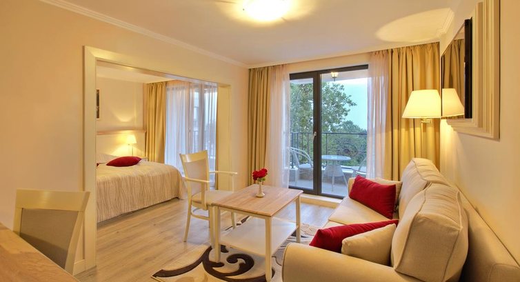Давно собирались написать отзыв, но все не было времени. А сейчас опять выбираем место для отдыха на лето и, посмотрев все предложения, решили вернуться и хочется поделиться восторгом. Нам невероятно понравилось, мы вообще не ожидали такого от Болгарии. Бронировали первый раз сами, долетели до Варны, оттуда 30 минут на такси. Встретили на рецепции очень дружелюбно, говорили по-русски, и старались во всем угодить. Мы бронировали номер Джуниор Сьют, и приятно удивились отличному виду на море, стилю номера прованс и махровым халатам с логотипом гостиницы, как в самых роскошных гостиницах. В Балчике несколько обустроенных пляжей: рядом с портом большой песчаный, где много семей с детьми, потому что пологий вход в воду; в центре пешеходной набережной маленький песчаный пляж, там тоже было много семей, хороший вход и пирс, с которого мы весело прыгали в воду; напротив ботанического сада самый спокойный пляж и вход в воду по ступенькам, на дне песок и иногда камни, быстро глубоко. Ходили везде, чтобы не надоело. Прямо через дорогу от гостиницы ресторанчики с местной кухней и Ботанический сад, дорога через который до моря ведет за 10-15 минут. Мы сразу купили абонемент на 5 дней, который стоил около 15 лев=7,5 евро и ходили через него. Ощущение как в сказке, когда идешь каждый день по аллеям с розами мимо дворца бывшей румынской королевы. Что-то увлеклись воспоминаниями о море и природе. Итак гостиница достойная: удобные кровати, просторный номер и балкон, все нужная техника фен, телевизор, wi-fi, большой бассейн и СПА. Завтрак был нормальный и массаж с шоколадом – это то, что было так нужно уставшему организму. Надеемся, что ничего не изменилось и мы так же отлично отдохнем.