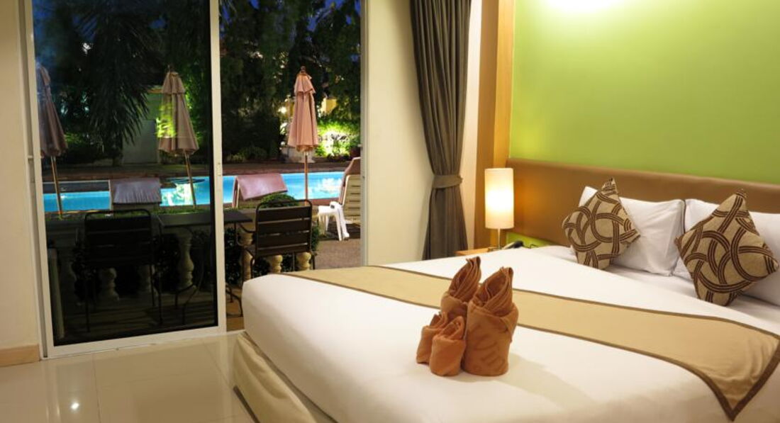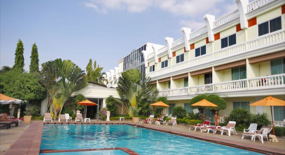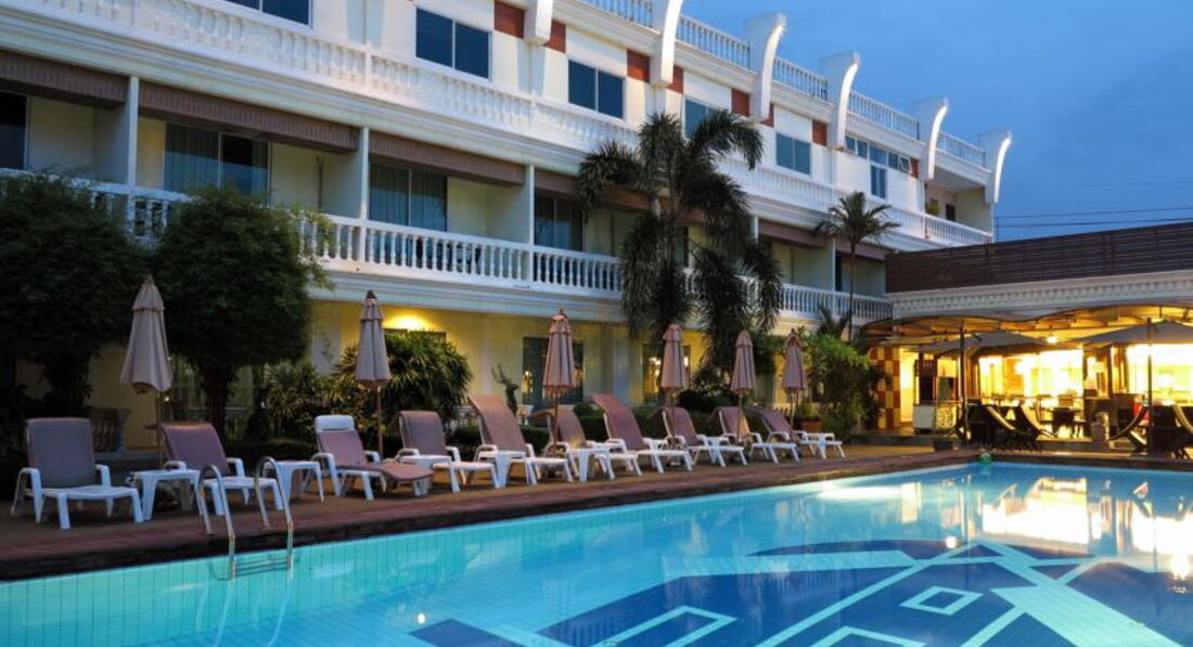 В Тайланде первый раз, да еще и на Новый год попали (как и планировали). По рекомендации турагента выбрали этот отель, т.к. близко к центру и спокойный. С самолета нас встретили девчонки-тайки, приветливые, веселые.. посадили в автобус и 2 часа езды из аэропорта Бангкока расказывали веселые истории про Тайланд)) про обычаи и т.п. Приехали в 16:00 поэтому заселение было моментальное.. правда дали сначала номер (который мы забронировали) с видом на "сад". К сожалению, "сад" оказалось только слово, стояло одно дерево и, напротив, был другой номер (1 этаж). Решили поменять. Дали прекрасный номер с видом и выходом к бассейну (также 1 этаж), кажется №112. В номере есть все необходимое: кровать, тумбы, зеркала, туалет, душ, мыло (меняли каждый день), полотенца, балкон, кондер.. все работало и не ломалось... Итак, разложили вещи и вперед...