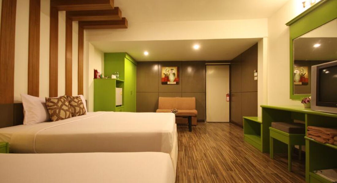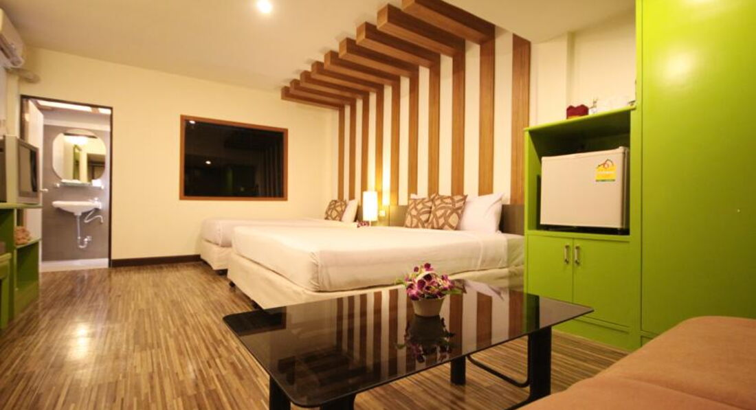номер а именно перепланировка изначально был переделан под гест хаус но он даже рядом не стоит., темный в сером фоне из за отсутствия окна, Сырость !! мебель потрепанная, дверь поношена, замок в отеле сто лет таких не видел и не всегда работал, фото прилагаю к отзыву. для тех кто не поверил. все весит отваливается, из ремонта видно что только заменили половое покрытие и все заканчиваются плюсы. Как заселили не понравился номер, Просили на ресепшене поменять номер в отрез отказываются менять номера или плати 11000 бат. А так номеров свободных нет. Хотя на следующий день освободились три номера на третьем этаже. думали что вот шанс поменять на более лучший номер но когда пришёлся по свободным номерам понял что они все расшатанные и поношенные. порой казалось что еще хуже.. далее. дверь в санузел из которого маленькое окошко на улицу. из самого номера окон нет. И очень тяжко без него. .порой было душно и сырость..).В номере есть ТВ, кондишен, все работает, 5 русских программ, !))) Сейф В НОМЕРЕ есть.