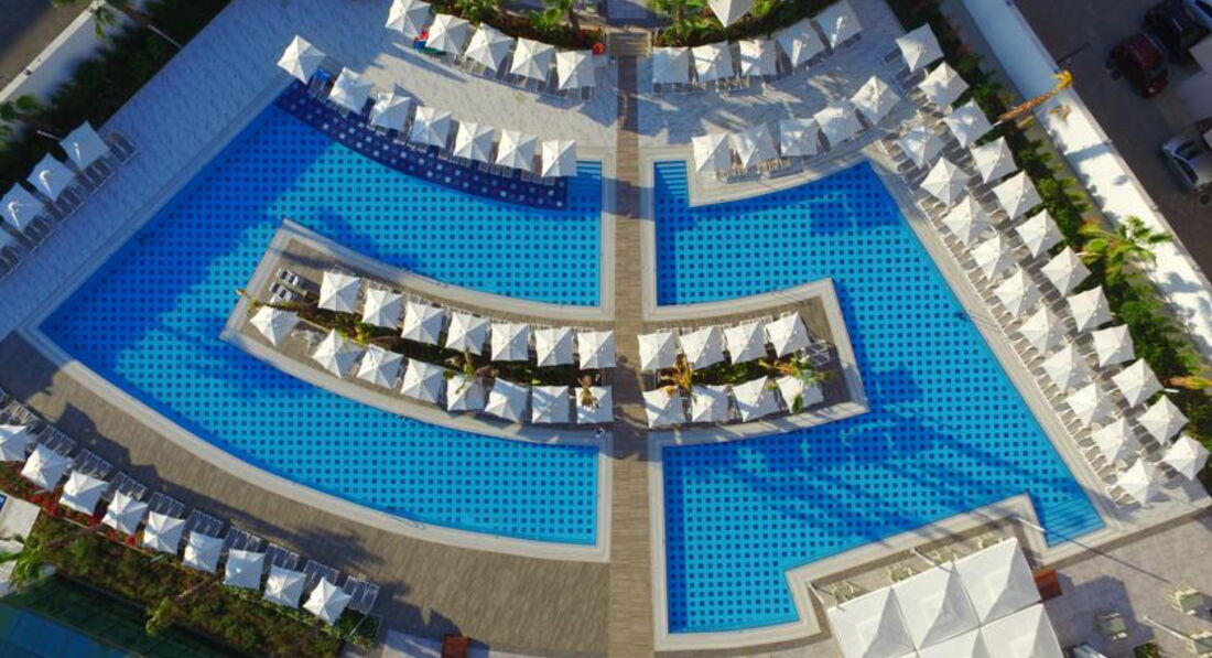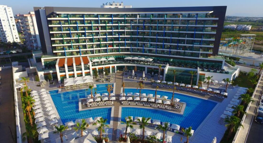 Новый отель, новая обстановка, шикарные номера, обслуживание 24 часа, ездили компанией из четырех человек. Территория небольшая, с одной стороны бассейн с детским бассейном и рестораном, с другой аквапарк, сцена и бар. Отличный лобби-бар с хорошими напитками и удобными креслами. Днем находиться на территории отеля не комфортно, даже в октябре, очень жарко от каменных полов, которые везде. Очень понравилась территория у моря: небольшая детская площадка, кафе, пляжный бар с различными напитками и песчаный пляж, на котором всегда есть свободные шезлонги. Отдельное спасибо приветливому бармену Сулейману. До пляжной территории пешком идти минут 7-8 или можно доехать на шаттле, который ходит достаточно часто. В отеле скучно, хоть и был полностью заполнен, в основном были конференции. Русских нет, молодежи нет, только русские немцы, турки и европейцы. Развлекали сами себя, как могли. Спасибо Натали из анимации, хоть было с кем поговорить.