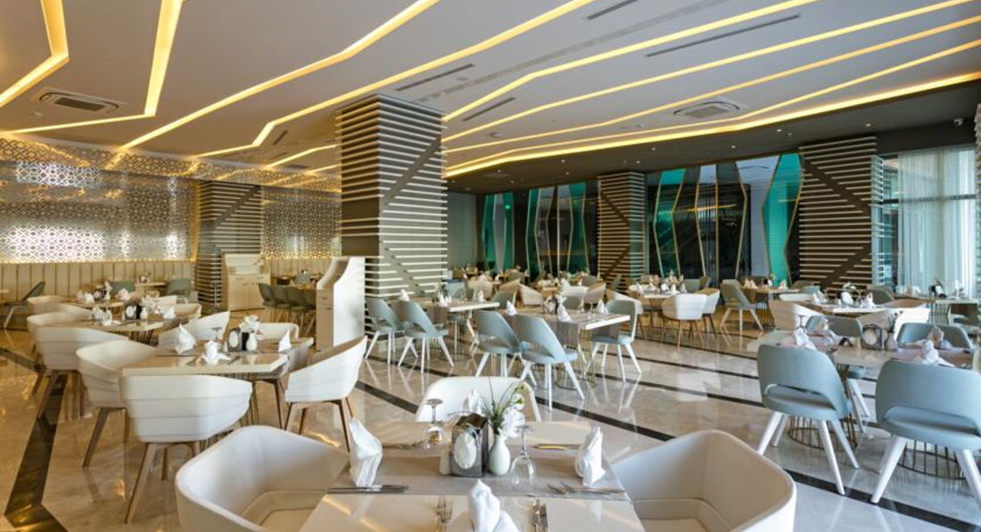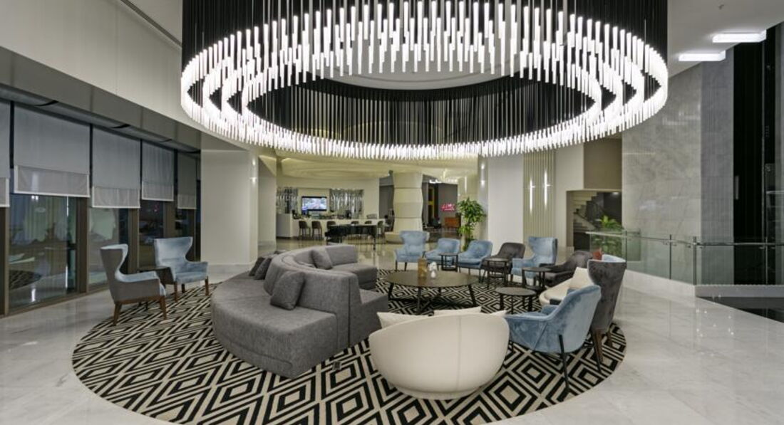 Замечательный отель!!! Он реально очень красивый, всё новое и блестит. Шикарная отделка все по-современному, красивые панорамные лифты шикарная люстра я не люблю золото, как раз на мой вкус. По всей территории устойчивый сигнал Wi-Fi. За телевизором в номере увидел роутер Zyxel. Возможно они есть во всех номерах. Номера новые все работает, освещение светодиодное с датчиками движения. Выключатели проходные управляются с прихожей, с центра комнаты у стола и с выключателей у кровати. Розетками напичкан весь номер, даже на балконе. Кондиционер работает централизовано, но можно дополнительно включить и самим, включали вечерами на подогрев. Сейф в номере имеется, в гардеробе также есть освещение, включается автоматически. Мини бар пополняется соками лимонадами и минеральной водой. Нам дали номер со стороны парадного входа, но там не было солнца, спустились на reception, но мы не владеем английским. Направили нас Дарье guest relation милая девушка она говорит по-русски. Сказали ей что хотели бы видеть солнце так как у нас зима она подошла к стойке всё им объяснила и нам дали номер со стороны бассейна, на балконе которого моя супруга и загорала. За номер ничего не спросили. Еще раз хочу сказать большое спасибо Дарье со всеми вопросами подходили к ней и все решалось. Так же у неё попросили халаты, их нужно спрашивать, по умолчанию их нет в номере. Утюга тоже нет, только услуги прачечной. Персонал отеля восхитил своей вежливостью и обходительностью. Если сидишь отдыхаешь в лобби подходят и спрашивают, что принести, и приносят к вам всё что попросишь. Понравилось пиво к нему брали микс из орешков, ещё понравилась текила её подают с солью и лимончиком. Делают разные коктейли, как алкогольные, так и безалкогольные (молочные, с энергетиками, фруктовые да все не перепробовать, здоровья не хватит). В ресторане официанты также обходительны по умолчанию сразу наливают воду в бокалы и спрашивают, что ещё будете пить. На выбор вино водка раки коньяк айран кола спрайт и др. приносят что попросишь. В отеле было мало гостей поэтому официанты обслуживали очень быстро, на выходные приехали местные отель заполнился, и официанты уже не всегда успевали обслуживать, но проблем для нас в этом не было. Лично мне не стоило труда сделать пару шагов, подойти к стойке и взять себе все что нужно самому. В понедельник в отеле снова стало спокойно и тихо, а ещё есть футболисты, они бывают утром и вечером, днём они уезжают наверно на тренировки. Меню богатое много выпечки мяса на гриле, шашлыки рыба. Про сладости их, как и в других отелях было много и разных видов и не мало фруктов. С кухней все отлично. Правда у нас отравился ребёнок думаем на супчик, но я могу ошибаться. Но на всякий случай с супами осторожнее, мы их не брали больше. Пляж зимой не работает и автобуса на пляж нет. Лежаки все убраны. Туристы ходят по берегу дышат воздухом. В первый день нашего приезда был сильный ветер, а вечером дождь море было мутное и с большими волнами. На второй день и до конца отдыха светило солнце и море было спокойным. Некоторые купались. Лично я тоже искупался три раза за весь отдых. Холодно выходить с моря, а вода в море прохладная, но не холодная, возьмите полотенце чтобы укрыться и не будет проблем. Но женщин, купающихся я не видел. В отеле замечательный бассейн с джакузи. Имеется сауна не очень горячая 75 граду