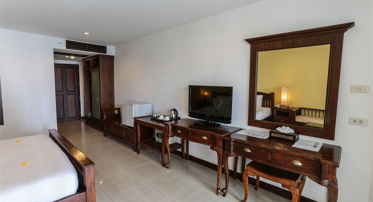 В Тайланде были не первый раз, но в этот отель я бы вернулась еще раз однозначно. Отель большой, с территорией и двумя бассейнами, расположение прекрасное - до центра близко (20 минут пешком, 5 минут на тук-туке), до моря 10 минут пешком, не понимаю людей, которые говорят что это долго, гуляйте чаще. Заселили как и положено в 2 часа дня, номер делюкс - очень просторный, огромная кровать, шкаф, тумбы, софа, столик, очень много ящиков и шкафов, что очень удобно. Балкон - это восторг! Огромный, со столом и лежаками. Вначале расстроились, что первый этаж и вид на забор, но потом поняли. что это плюс, так так мы проводили там очень много времени, никто не мешал, тихо, уединенно, посидеть там вечером с креветками и пивом одно удовольствие. Завтраки отличные, вкусно, но не всегда был выбор, хотя это вина наших соотечественников, которые прилетели с голодного края, набирали себе целую поляну еды, и поклевав немного так ее и оставляли на столах. Столики стоят на террасе, на свежем воздухе, рядом поют птички, завтракать очень приятно. Рядом с отелем вечером открывается небольшой рынок с различной едой, брали там морепродукты и ужинали в номере. Креветки у тайца на пляже - самые вкусные в моей жизни.
