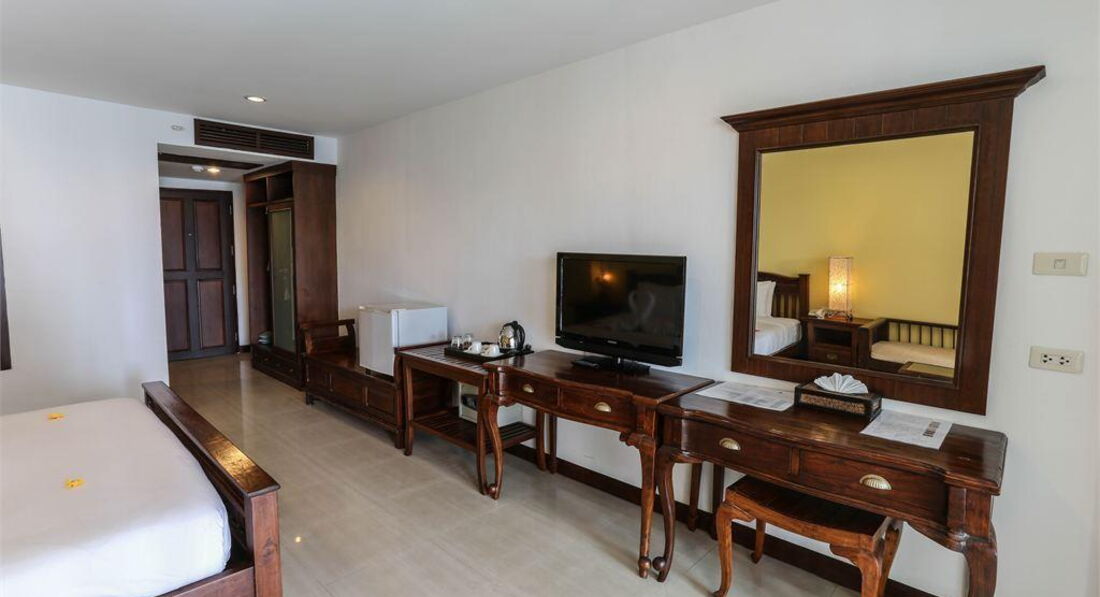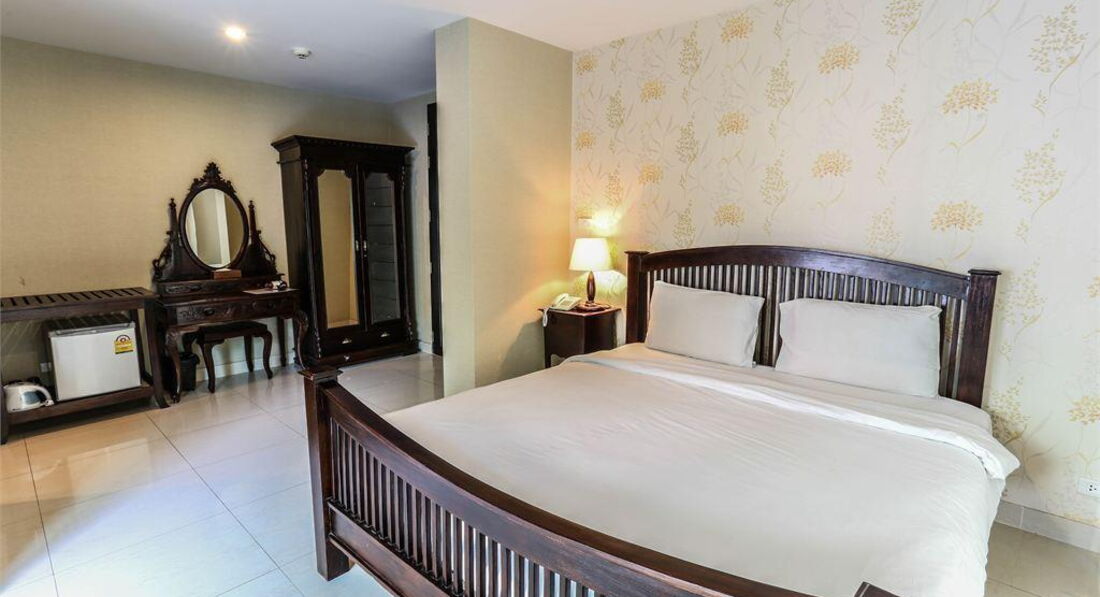 Отдыхали в этом отеле в феврале 2017 с мужем и ребенком (1,7 мес) от Натали тур.Перелет был тяжелый с пересадкой в Дубай. В Бангкок прилетели в 11:00, затем ждали, когда всех соберут в большой автобус около полутора часов. В отель прибыли около 15:30! Отдали документы администратору на ресепшене, тут подошла еще семья из трех человек с украинскими паспортами, и их быстренько заселили, хотя мы с маленьким ребенком и ждем уже достаточно долго! Ну да ладно! Повели нас в корпус D, на первый этаж в делюкс. Мы и заказывали делюкс, т.к. там плита, и я думала, что смогу готовить ребенку, но как потом выяснилось, что плиты в делюксах не работают.Итак, подвели нас к номеру на первом этаже, я запротестовала сразу, т.к. муравьи и ящерицы будут нашими лучшими друзьями! Без проблем нас сразу же поселили в гранд делюкс, что в главном корпусе на пятом этаже. Доплаты ,причем не потребовали! Номер, конечно не такой большой, как делюкс, но полностью обставлен. Имелось две кровати, односпальная и двуспальная, диванчик, три столика, два стула, шкаф , тумба, и одна тумба под телевизором. Идем дальше! В ванной имеется две раковины, унитаз соответственно, сама ванна и душевая! И конечно же огромный балкон с двумя лежаками и видом на бассейн! И тут я даже про плиту забыла! Что касается уборки, то убирали почти каждый день. Нет, ну убирали, это громко сказано, но полотенца меняли каждый день, хоть и старые , причем оставляли по 4 больших и 7 маленьких,плюс три бутылки воды! Иногда, когда сын спал днем, они при мне делали влажную уборку! Иногда мы и сами мыли пол, потому как маленький ребенок с нами. За три недели проживания постель поменяли раз, за день до отъезда. Нас это удивило и даже рассмешило! Благо у нас своя простынь имелась! Но, если честно на это не обращаешь уже внимания! Как бы мы тащились в такую даль за морем и солнышком! Экскурсии не брали, с маленьким путешественником это не очень удобно. Но и в номере не сидели, много гуляли, ездили в центр через день! Ходили в центару фоткаться. На массаж и т.д.