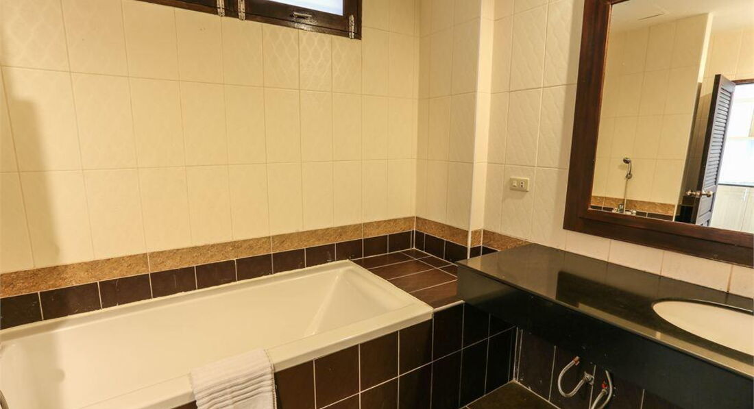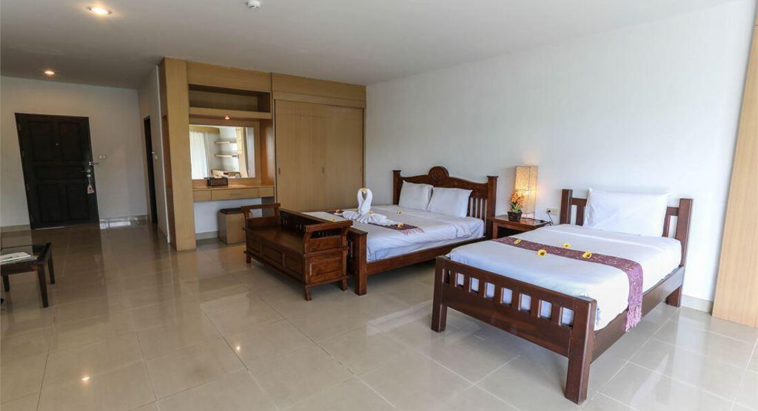 Перенесли в новый номер вещи, корпус В, он огромный, хоть самолет сади, здорово! , НО….2 кровати односпальные просто сдвинуты вместе и опять 1 подушка и 1 комплект полотенец. Твою ж мать! Прошу на ресепшен принести все недостающее, говорят не положено! Как это? А полотенца, а вода? На след день принесли полотенца и воду, но на 2 человек.Номер был грязный, все полотенца серые с дырками, в ванной стены в грибке, грязные, все в потеках от старых жильцов, половина лампочек не работает, холодильник не исправен, в пульте от кондея нет батареек (это я не говорю от упаковки от презервативов у кроватного столика и тумбочки залитой маслом для загара или кремом, я не разбиралась). Кухни нет, ни микроволновки, ни раковины, ничего! В ванной во всех корпусах в душевой не работает нормально слив, по щиколотки стоишь в мыльной воде, мастер сделать ни чего не смог( у других было также, но не все жаловались, т.к. им было нормально видимо). Wi-fi на всей территории тоже нет! Обман, он есть только у ресепшен. Это 3*? Нет товарищи, это даже до 2* не дотягивает. Что подтвердила отельный гид. Бассейн грязный, вода мутная, лежаки все старые (но это пережить можно, в Тае не везде так, но случается). Завтраки: оооо, это песня! Да, как и писали выше, на завтрак есть яйца, тосты, хлопья, овощи (огурцы, помидоры, салат, морковка), рис, арбуз. Вся еда всегда холодная. За овощами стоит очередь, т.к. приносят их очень мало, и туристы сразу расхватывают, т.е. мало кто ест хлопья или тушеную капусту, все хотят есть нормально. Суп-клестер с мукой, естественно холодный? Я до сих пор удивляюсь, кто это ел! Тостер. К нему выстраивалась длинная очередь, похоже, что все сидели на мучной диете)))т.к. есть реально кроме хлеба с яйцами было не чего. Все время заканчивались, то вилки, то кружки, то еда))) смешно, а это утро, когда все хотят позавтракать и убежать на пляж, а нет…стой в очередь к тостеру (он как черепаха), жди свою ложку и жуй траву и будь любезен, не злись на тайцев, у них Сабай,! Полотенца для пляжа и бассейна-мрак, гнилое рванье с пятнаями. Ок, и это можно пережить! Но почему я должня за 110 тр.р за 10 дней так жить??? Меня уверяли, что отель терпимый!