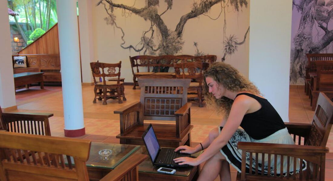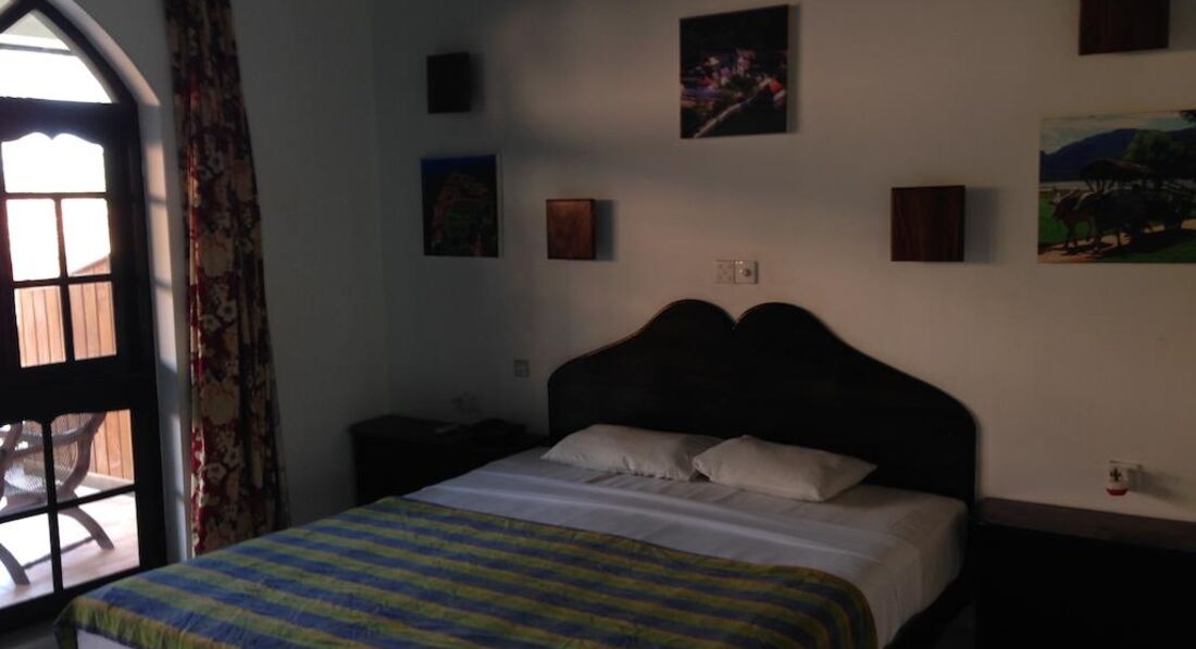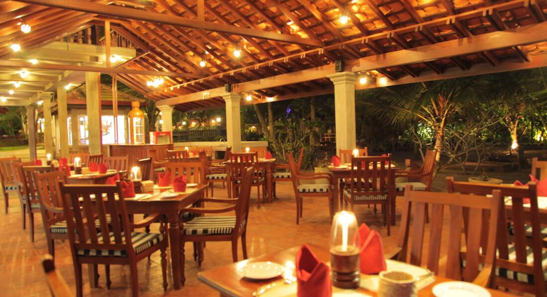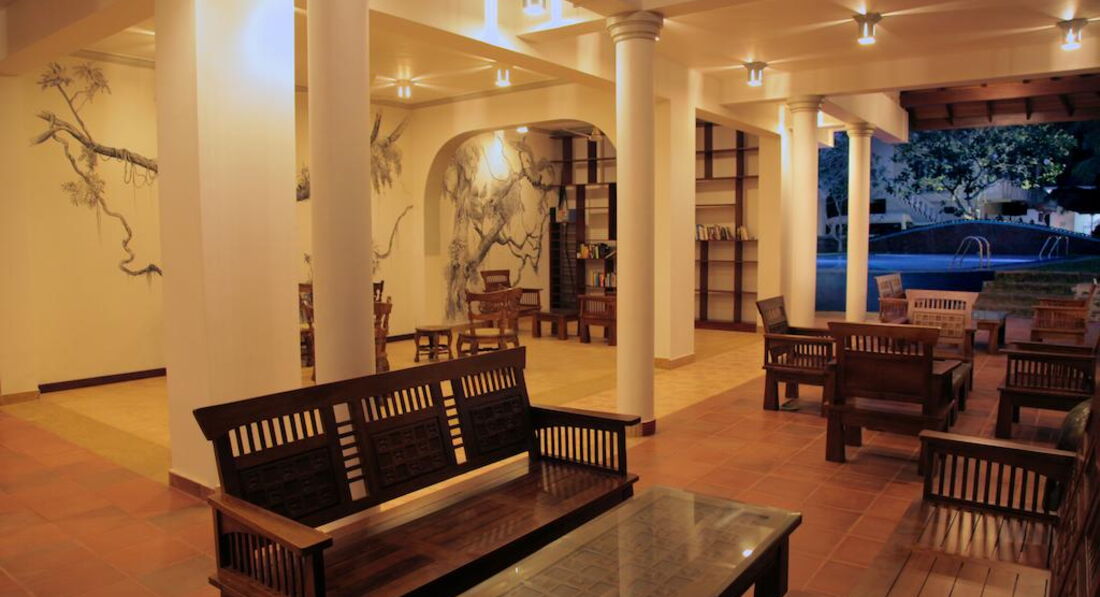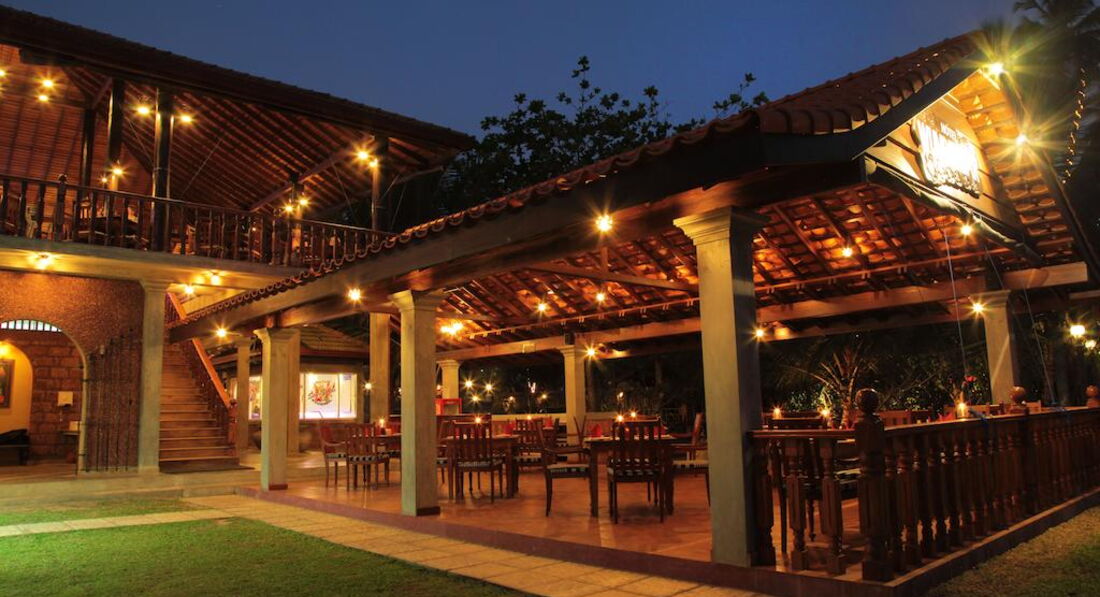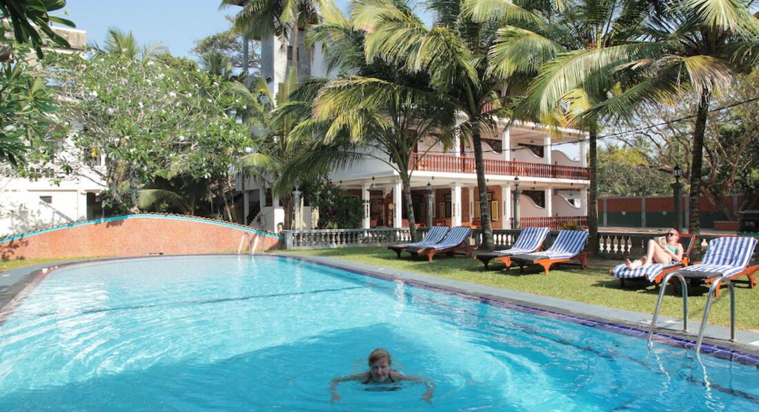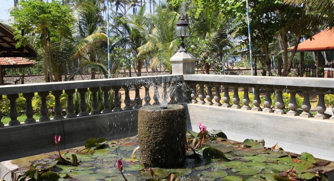 Отель очень небольшой, расположен неподалеку от пляжа. Интересно, что рядом с отелем имеется несколько также небольших отелей или просто частных комнат, небольшие ресторанчики. Также рядом с отелем несколько лавок, где можно, не выбираясь в город, купить фрукты, поделки, чай, картины, сок и т.п. Один выход из отеля к пляжу через железную дорогу, а второй на дорогу в местный городки. Железная дорога пугать не должна, так как она проходит вдоль побережья, поезда ходят не часто и все отели, за исключением единиц расположены по эту сторону железной дороги. Хуже, если отель расположен еще и через автодорогу, но этот как раз именно только через "железку". На территории отеля есть тук-туки, на которых за 80-100 рублей (в переводе рупий на рубли) можно добраться до городка и обратно. В городке есть лавчонки, магазины, рестораны и ресторанчики. Там же есть экскурсии по реке с заездом заливы.