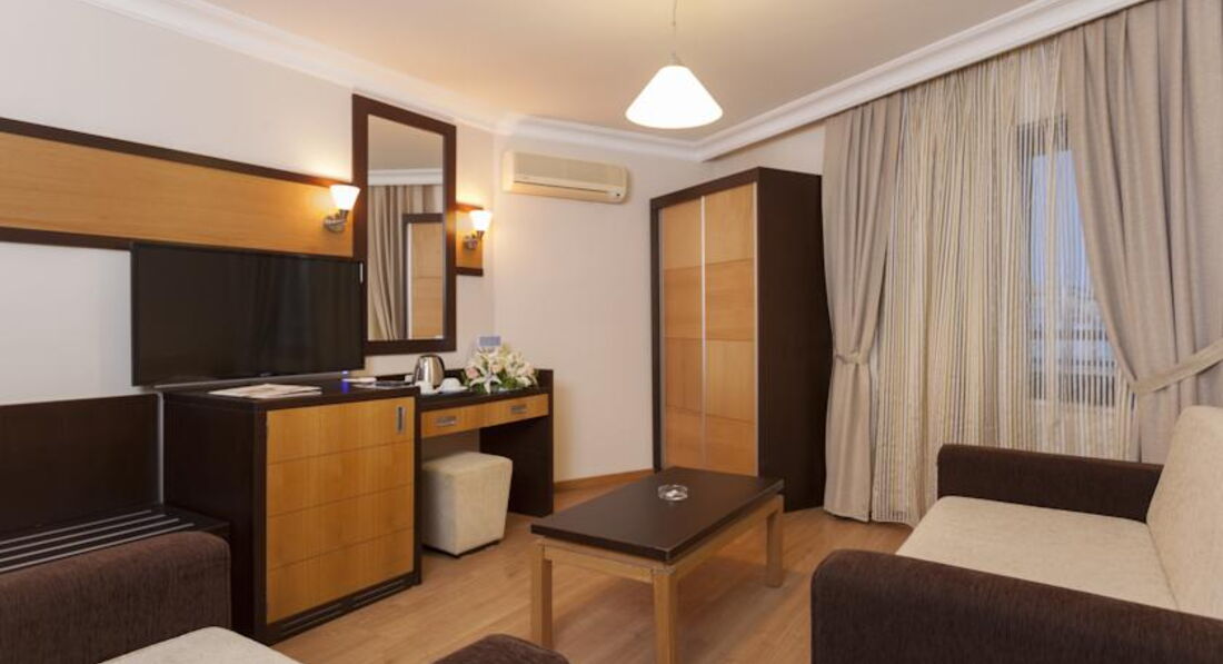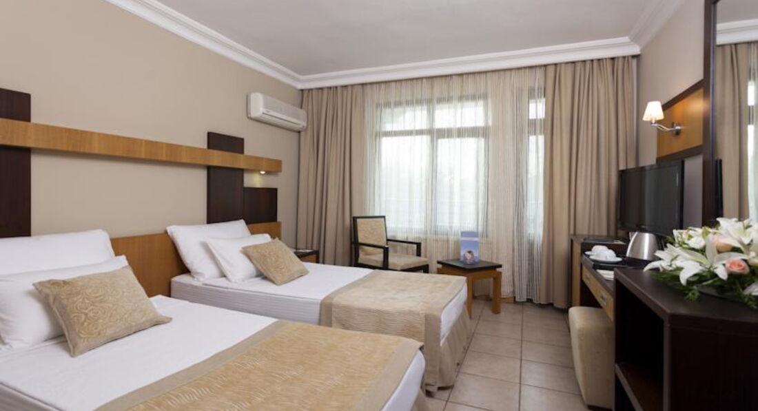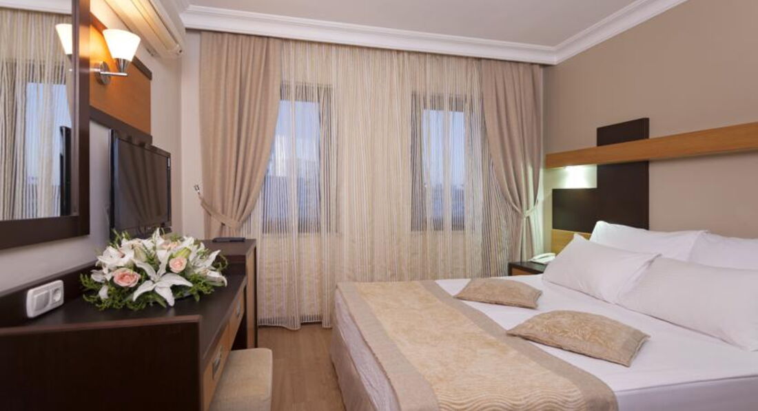 Отдыхали семьей в начале июня сего года. Отель замечательный! Номера небольшие, но уютные, уборка ежедневно, единственный недостаток, что горничная не всегда успевала убрать номер до обеда. В номере есть все необходимое, мини-бар всегда был полон, фен, телевизор, кондиционер - все,что нужно для нормального отдыха. Возникла небольшая проблема с дополнительной кроватью для ребенка (складывалась в самый неподходящий момент), заменили моментально, как только пожаловалась. Персонал отеля очень благожелателен, приветливые, улыбчивые и просто добрые люди (Муззафар, Камаль, Осман - привет! Елиз - еще раз спасибо за все!), шеф-повар - гений! Кормили потрясающе)))) выбор салатов, горячих блюд весьма разнообразен, а количество и качество десертов ..... это сказка.