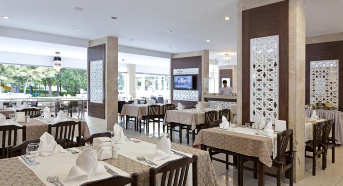 Система "все включено" діє з 10:00-00:00. Включає прохолодні та алкогольні напої місцевого виробництва (кола, фанта, мінеральна вода, вода, кава нескафе, пиво, вино, раки, горілка, концентрований фруктовий сік, чай) та деякі напої імпортного виробництва (коньяк, віскі). Платно: свіжий сік, морозиво, імпортні напої, турецька кава, еспресо, коктейлі.