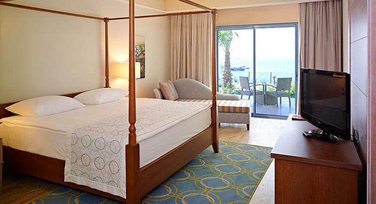 Приехал из отеля вчера. Отель абсолютно новый. При входе в номер в нос ударил запах новой краски, мебели, отделки. Мы бронировали в простой сьют, но не знаю почему, может туристов было мало, нас заселили в сансет съют, он дороже. Мелочь, но очень приятно. Вид из номера на море, вообще все номера в той или иной мере с выходом на море. Очень необычно само расположение отеля, сама идея, на острове. Приятно прогуляться вокруг отеля, кругом море, дует ветерок. Насчет щекотящей гальки, тут мнения расходятся, в рекламе записано, что пляж песчаный, но по факту гранитная крошка, поэтому ходить по ней без обуви (шлёпки) почти невозможно. В море заходить только в обуви (очень острые и скользкие камни) или с пирсов, их 3 на острове. Самый лучший был с глубиной 3 метра, можно нырять в любом виде. Дно просматривается с 3-х метров, если ветра сильного нет (без ряби на поверхности), вода очень чистая, берег чистый. Лежаки с балдахином, не обгоришь, мягкие. Очень удобные и качественные лежаки. Есть два бассейна с видом на море, очень красиво. Про сервис, у меня в номере протекал кран под раковиной, полы мраморные поэтому можно подскользнуться, просил три дня чтобы починили. Питание очень приличное, всё вкусно и разнообразно. Не рекомендую идти в ля сарт Итальянский, после него мы пошли на шведский стол))). Но готовят в Итальянском хорошо, просто меньше разнообразия и долго ждать пока принесут. До морского ресторана дело не дошло, хватало того что было. Для молодежи может и не совсем подходит этот отель, дискотек нет. Есть живая музыка, шоу аниматоров. Хороший отдых для состоявшихся людей, которым хорошо вдвоём или с детьми, тихое спокойное место. Контингент был в возрасте, за 35 в среднем. Есть морские развлечения, но дельтаплана и парашюта нет. Много чего еще там есть, но пока мало зелени, деревья и пальмы только разрастаются, но это компенсируется видами моря из бассейна и с любой точки острова. Про дорогу. Дорога до Бодрума хорошая, но после города до отеля почти бездорожье, конечно асфальт есть, но редкий и не совсем ровный))). Правда при входе на ресепшон, после "дорожки" вас угостят бокалом холодного шампанского, тоже приятно. Есть рускоговоряший персонал на ресепшоне, аниматоры все русскоговорящие, поэтому проблем с пониманием никаких, если кто не знает инглиша. С турками в ресторане не очень хорошо получается объясняться, не все хорошо знают инглиш, если слово не из их словарного запаса, то тупят, но это не страшно. Менеджеры хорошо понимают. Короче мне понравилось, недели хватает вполне чтобы отдохнуть и чтобы не надоело.