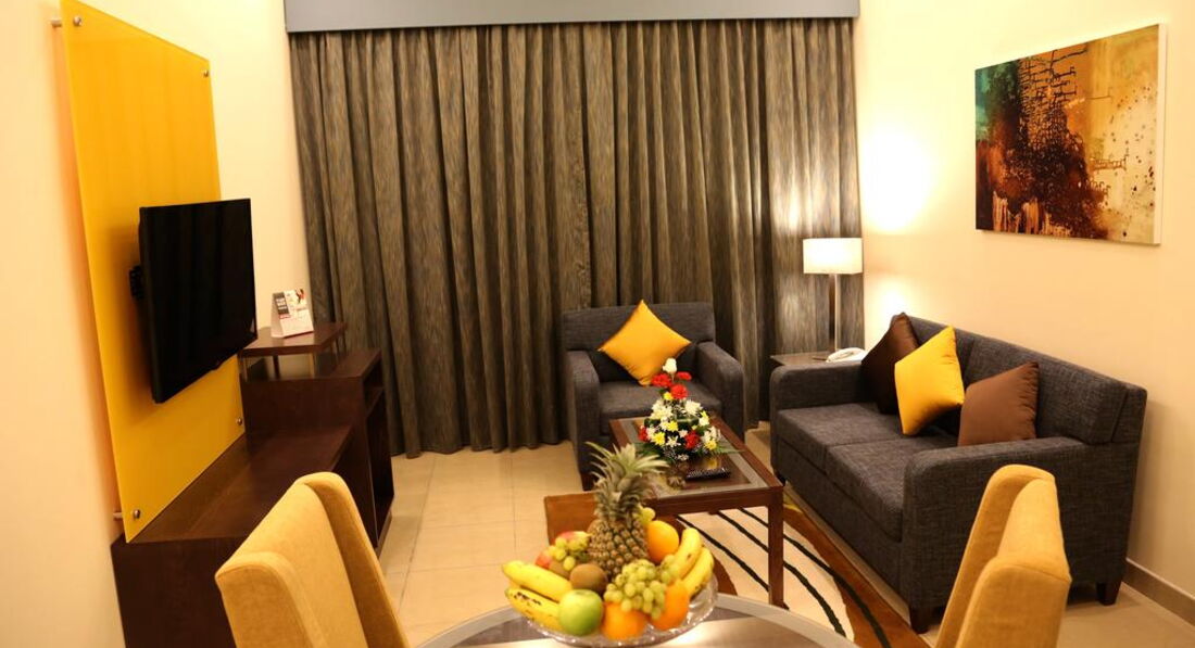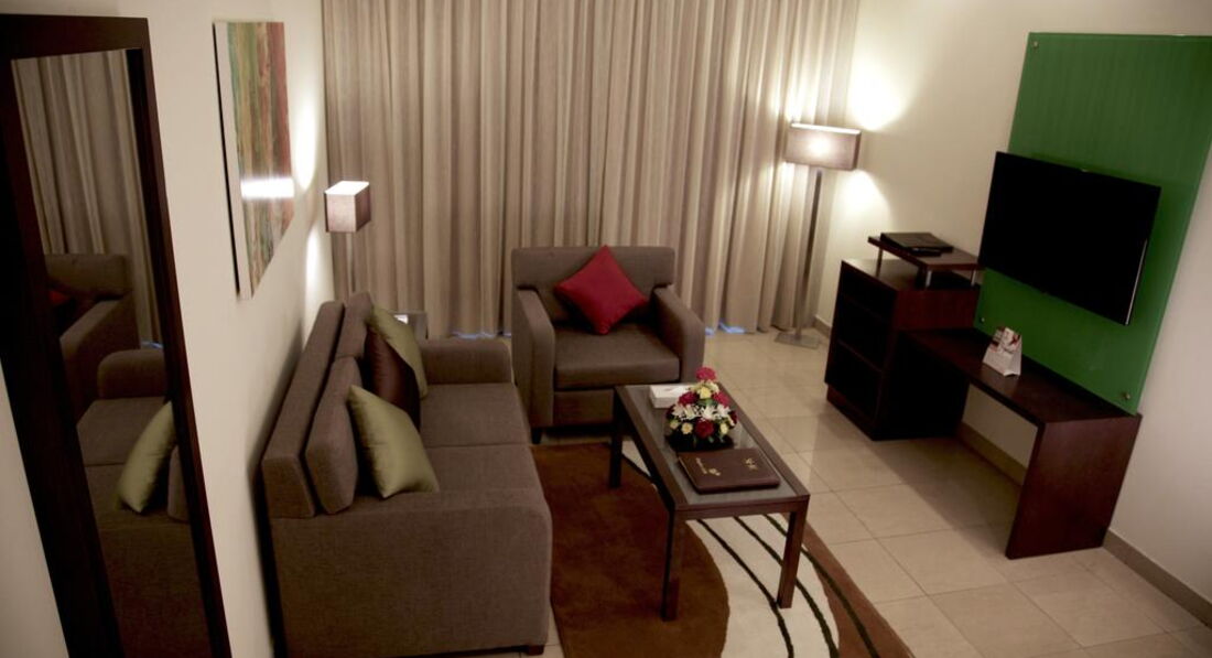 Типи номерів: • Executive One Bedroom Apartment, 50 кв. м, спальня з двоспальним ліжком • Deluxe One Bedroom Apartment, 60 кв. м, спальня та вітальня з диваном • Executive Two Bedroom Apartment, 90 кв. м, спальні з 1 двоспальною та 2-ма односпальними ліжками. • Deluxe Two Bedroom Apartment, 60 кв. м, спальні з 1 двоспальною та 2-ма односпальними ліжками.У номері: • балкон • кондиціонер • Wi-Fi: безкоштовно • кухня/кухонний блок • ванна/душ • санвузол • пральна машина • набір для кави та чаю • TV: супутникове • телефон • сейф у номері • фен • холодильник • письмовий стіл • прибирання номера: щоденно • room service