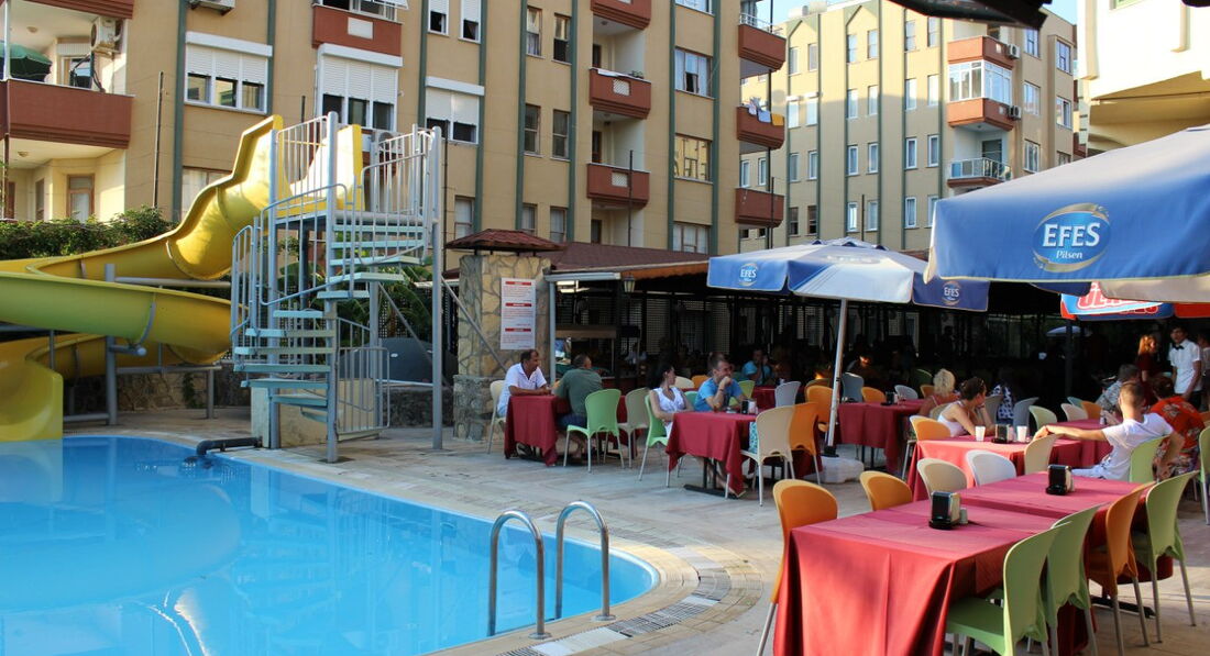 Добрый день всем читателям отзыва и тем кто собирается в этот замечательный отель! Отдыхали с мужем в этом отеле с 20.05-31.05.2017 года. Имеем массу впечатлений которыми хотелось бы поделиться. Для начала хочу поблагодарить весь персонал отеля за ежедневное прекрасное настроение которое они дарили гостям каждый день! Очень душевные, отзывчивые, хорошие девочки на рецепшене Леночка, Виктория которые помогали с возникающими вопросами, проблемами и днем и ночью. Отдельная благодарность шеф-повару Рамазану и всем поварам за отличное, разнообразное, очень вкусное питание, сладости это вообще что-то особенное было!!! Более вкусных я не ела нигде и меня поймет только тот кто был в этом отеле и пробовал! Официанты парни большие умнички, молодцы они за день реально не приседали, очень активные, быстрые, разговорчивые. Большой привет продавцу отельного маркета Бураку человек вообще не говорит по русски, слабый английский при этом всегда рад был помочь если нужно что-то купить, разменять деньги или были вопросы относительно товара. Также большое спасибо повару питы (лепешек на пляже) очень вкусно готовил, не приседая и на минуту, не останавливаясь при этом всегда улыбался, подавая еду с отличным настроением! Также спасибо швейцару который носил багаж, всегда здоровался, встречал гостей с улыбкой рад был помочь с вещами круглосуточно (не помню имени) высокий, крепкий мужчина). Теперь напишу немного о самом отеле: он не новый, даже сказала бы старый, реновацию прошел в 2017 году, но не масштабную. В 2016 году отель не работал так как не было такого большого количества туристов, ремонт на момент нашего пребывания был косметический. В номерах особо изменений нет, но они чистые, уютные, есть с видом на море, горы, бассейн кто любит музыку послушать) Я не совсем понимаю негативные отзывы так как люди платят за тур относительно не большие деньги при этом хотят по максимуму!Так не бывает, поэтому сразу нужно понимать, учитывать что это бюджетный - отличный вариант. В этом отеле есть замечательный хамам с опытными, профессиональными массажистами, отличный маркет где можно купить продукты, воду, сладости, пляжные принадлежности, овощи, фрукты хотя в этом просто нет необходимости поскольку питание супер! голодным никто не оставался. На территории есть 3 бассейна большой, маленький для детей, также возле бара с горкой для желающих выпить коктейль и отдохнуть сразу возле воды. Также каждый вечер проводили шоу-программы очень разнообразные это и восточные танцы, 3Д лазерное шоу невероятное, акробаты, фокусники не оставят равнодушными никого. Также были дискотеки в самом отеле, выездные в центр Аланьи. Подведу итоги: есть небольшие нюансы по отелю, у нас была проблема с номером но она решилась мгновенно на рецепшене без стресса для нас и сотрудников, плюс солнце, море, пляж до которого очень близко, отличное питание, сладости, не большие деньги за тур который на минуту длится не 7 дней как обычно, а 11 или 14 перекрывают все недочеты которые я думаю скоро будут устранены так как отель набирает все обороты на улучшение. Хочу от души пожелать отелю развития, успехов, удачи, процветания по-больше счастливых, улыбчивых гостей! С наилучшими пожеланиями ваши гости с Украины!!!
