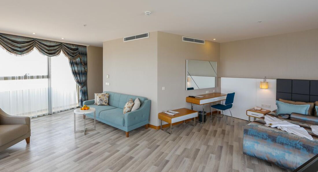 Готель розташований за 15 км від міста Аланья, через дорогу від моря. Складається з одного 6-ти поверхового основного будинку та одного 5-ти поверхового додаткового корпусу. Дата побудови - 2017. Готель відмінно підходить як для молодіжного, так і для сімейного відпочинку. Площа території 11000 м². КОНЦЕПЦІЯ "ЛІТО 2019".