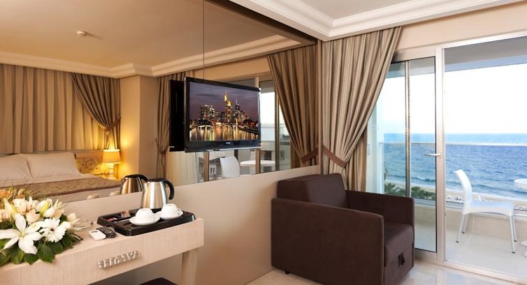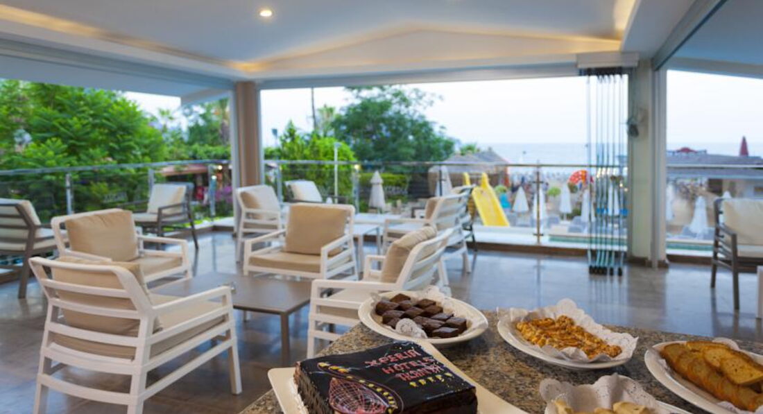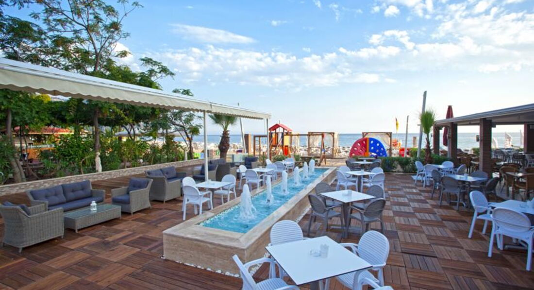 Отдыхала неделю с ребенком 4 года, номер sea view, питание "Всё включено". К номеру претензий никаких, удобная ванна для ребёнка, душевая кабина, раковина, полотенца, тапочки, уборка номера, абсолютно всё без нареканий. Питание прекрасное, обязательно надо брать полный пансион. Все свежее,большой выбор: супы,пюре,макароны, рис,йогусты, блинчики, амлеты, фрукты, сухие завтраки, овощи тушёные, варенные, запечённые и т.д. .. можно всегда найти чем накормить ребёнка, не говоря уже о взрослых. Персонал приветлив,забыла дома пляжную сумку,спросила на ресепшн, где можно купить, - мне принесли сумку Xperia, с которой я на пляж и ходила. :-) Отель тихий, анимация ближе к пляжу, возле бара, обычно очень приличная концертная программа с живой музыкой,что и нужно было,есть детская площадка с качельками, горкой и разными приспособлениями для лазания. Но самое главное, есть где погулять, отель в центре города, рядом детские парки, атракционы, всё бесплатное, магазины, бары, диско-центры и прочие развлекаловки. В общем отель рекомендую, думаю, что приедем еще раз обязательно.