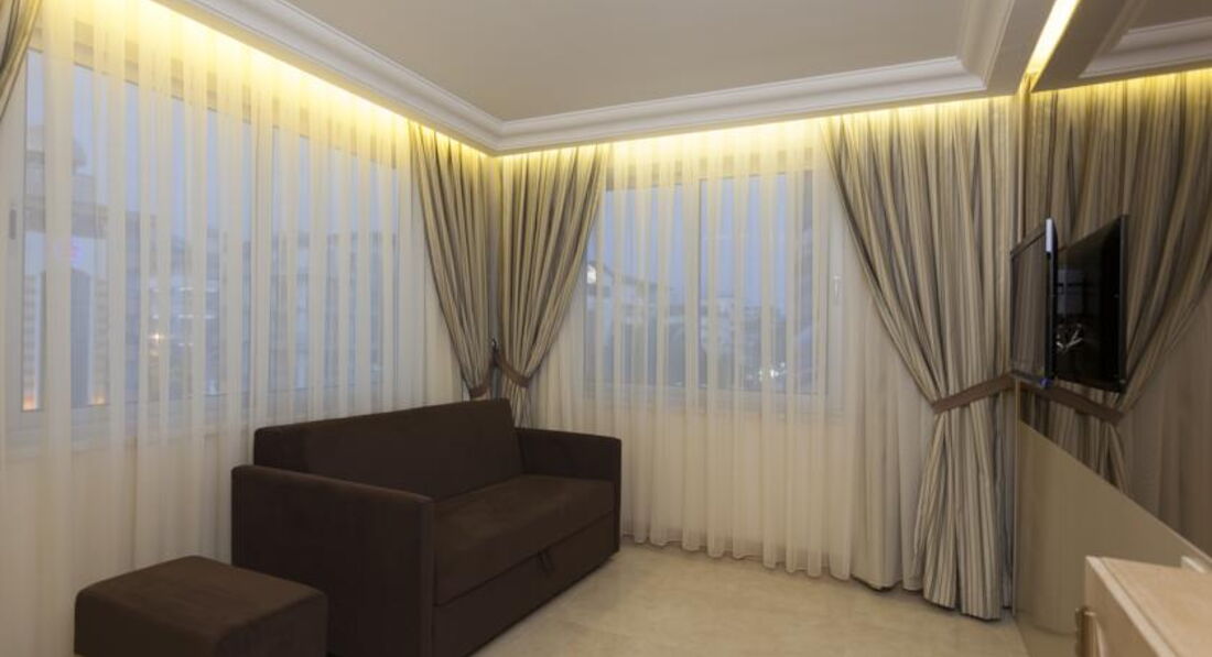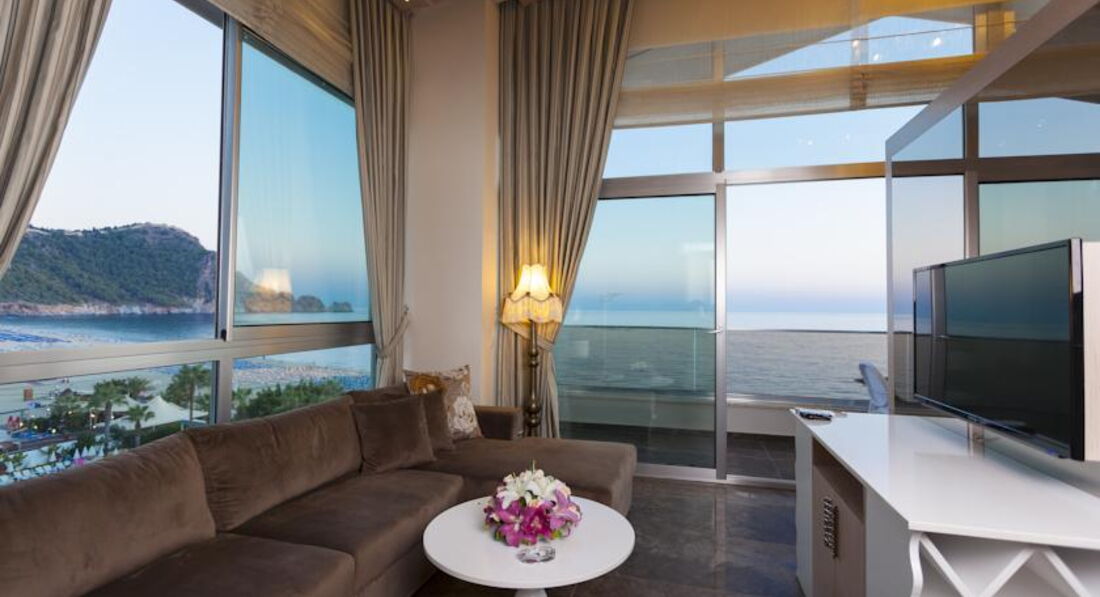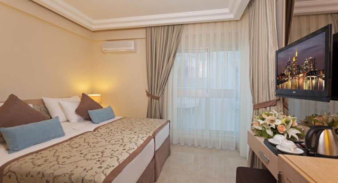 Розташування: на березі моря, пляж Клеопатри, в центрі міста Аланія, відстань до аеропорту 120 км.
