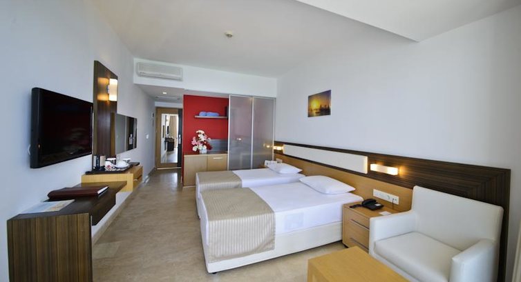 Достоинства отеля,очень уютный,красивый,чисты номер,все новое,пляж просто сказка,мелкий песок нет не одного камешка,места на пляже хватает всем,на территории очень красивая зелень и ароматные цветы.Заселения не смотря на все условия проходит очень быстро в течении 15 минут,что очень понравилось.Подходит для отдыха с маленькими детками.Минусы отеля:не большая территория,нет анимации,персонал плохо говорит и плохо понимает по русски(знание немецкого для отдыха не помешает =)))))) И что ОЧЕНЬ сильно не понравилось что немцам ОЧЕНЬ ОЧЕНЬ много уделяет внимание персонал в ресторане и барах(возможно магия чаевых),но попробовав дать чаевые они ситуацию не изменили,так что советую вам не тратить на это сил.Ну вот для примера скажу что утром приходилось ждать чай или кофе от официантов по 20-25 минут,а иногда они просто забывали просьбу и приходили спрашивали еще раз что выходило самим быстрей его сварить)))))))Но к немцам подход был другой совершено иначе их просьбы выполнялись в течении 3-5 минут,в последнии дни даже так развлекались засекая время исполнения заказа.Анимации там тоже нет(( В общем отель советую,так как больше плюсов,сама бы туда еще бы поехала,правда очень надеюсь что изменят отношения к Украине и России.Спасибо надеюсь мой отзыв поможет Вам приятно отдохнуть без сюрпризов!Рекомендую отель для отдыха с маленькими детками.
