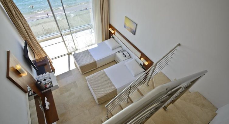 Отдыхали семьёй из 4 взрослых в мае 2012года.Отель прямо на берегу песчаного пляжа,хороший вход в море,песок,никаких плит,как во многих отелях в Алании. Питание просто на 5+, много фруктов,морепродукты,мясо разное,кура,язык говяжий,рыба разная,выпечка очень вкусная,даже в некоторых 5* так не кормят. Номера чистенькие,опрятные. Персонал вежливый,улыбчивый. Есть,где вечером погулять за территорией отеля.