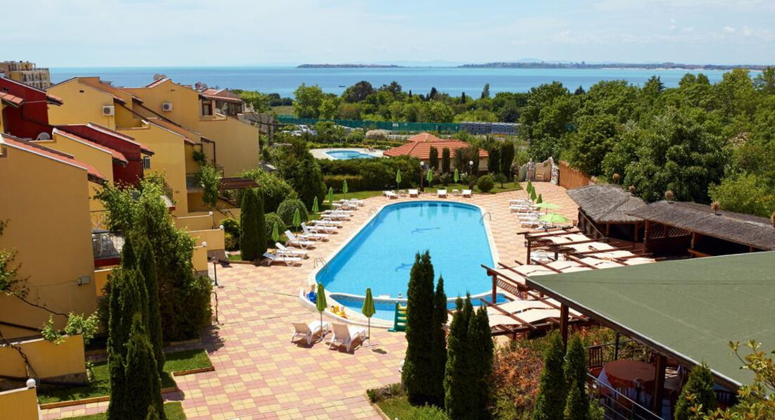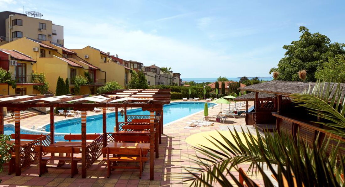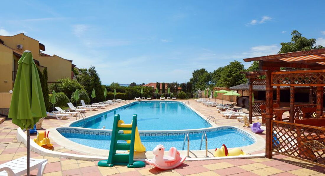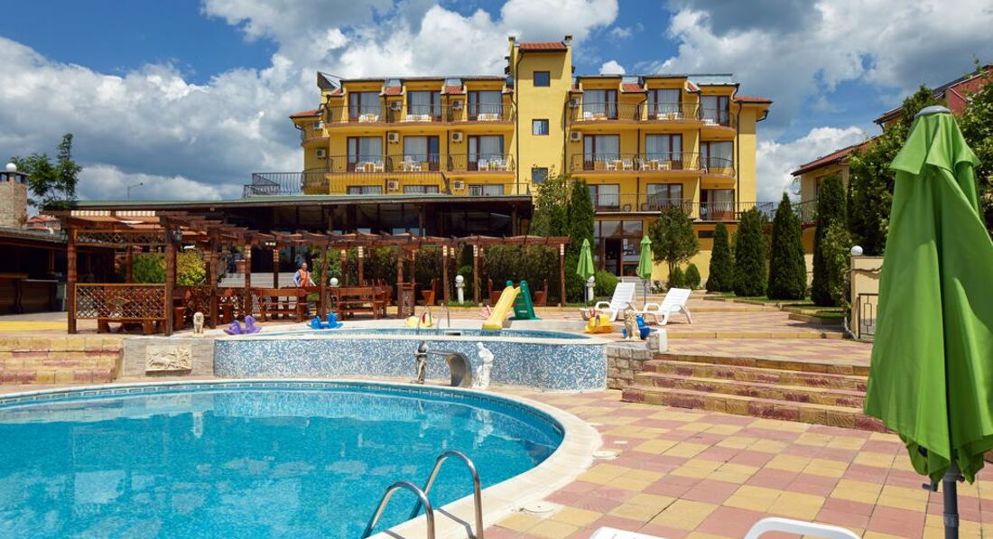 Отдыхала с сыном и мамой в июне. Мне понравилось, что в отеле тихо, рядом есть даже лесок - бывший санаторий прогуляться можно. Липы цвели - запах супер. До моря недолго, минут 5 - 7. Там пустынный пляж небольшой. Меня устраивал очень. Но если надо побольше народу, то в права, минут 10 и песочный пляж. Мимо нудистов)) можно их обойти)). В отеле чисто, убирают нормально, бассейн чистый. Десерт очень вкусный у повара. На завтрак всего полно, но я и сын ничего особо не любим. Круасаны ели, да хлеб с джемом. А так - каши, фрукты, сыры, колбасы, салаты. И все такое. ) На ресепшене - хорошая девушка Женя работает. По русски хорошо говорит и помогает по любым вопросам. И Люба - хозяйка очень отзвычивая. С детьми тут хорошо, уже нет шума Солнечного Берега и еще нет движухи Святого Власа. Как бы обособленно стоит отель, но до Власа на автобусе 5 минут). Автобусы ходят каждые 10 минут до ночи. И тут еще караоке можно петь!) В 11 вечера все заканчивается и спать не мешало.