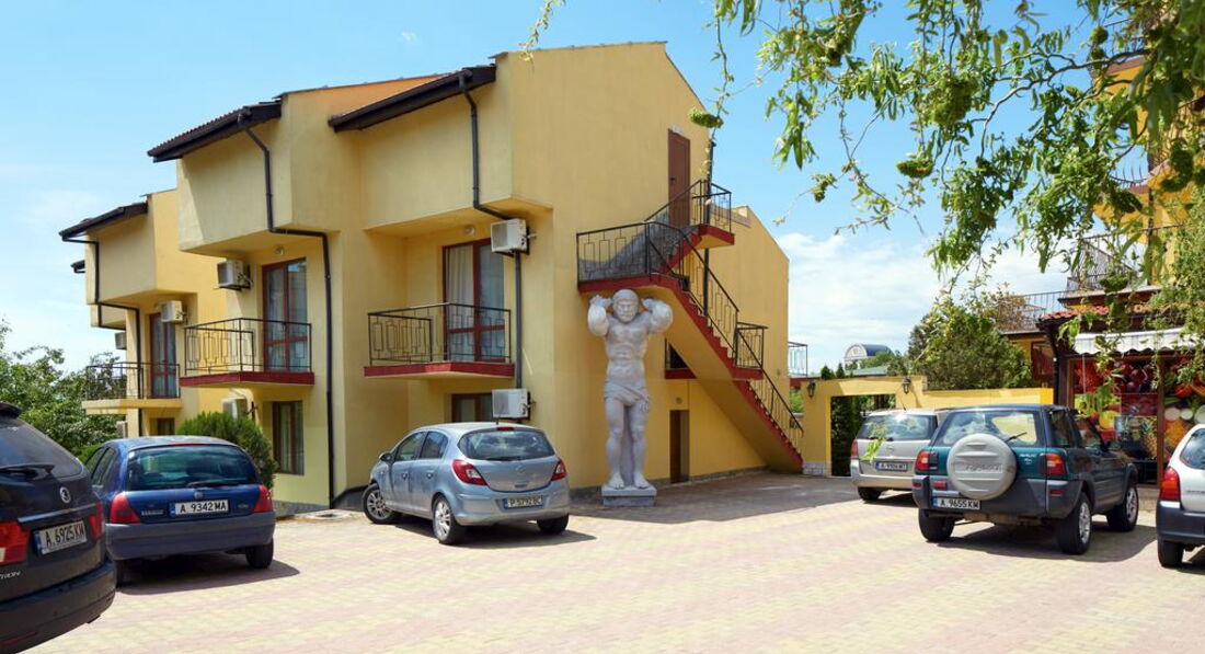 Очень хотелось куда-нибудь поехать, Болгария и данный отель очень устроили по цене. Т. к. мы понимали, что отдых бюджетный, настраивались на отель заранее). Но самым большим разочарованием в отеле стал кондиционер (видимо был плохо заправлен, ничего не охлаждал и вонял), но мы им почти не пользовались, т. к. в номере только ночевали и ходили в душ. Приехали мы рано утром, и заселили нас не сразу, парень на ресепшне сказал, что нужно ждать, пришла хозяйка Люба, мы уточнили когда нас заселят и можем ли мы позавтракать (у нас включены только завтраки). Ответ был: "Вы только сегодня заезжаете, заезд после 13:00 и на вас завтрак не готовили", но потом любезно пригласила попить кофе. Мы попили кофе и нас сразу заселили. Номер был обычный, на 3-м этаже, с балкона даже видно было море))), хотя это далеко не 1-я линия. По еде на завтрак было одно и тоже, кстати, в местном ресторане можно было за деньги брать обед и ужин, мы пару раз брали ужин, рыбу и мясо готовили при нас на углях. По уборке: мы всегда оставляли 1 лев уборщице, и у нас никогда не возникало проблем ни с бельем, ни с полотенцами. Шума от дороги не было. Забыла, на территории был магазин, где все было дороже намного, через дорогу в отеле тоже был магазин, там было дешевле в 2 раза, но лучше ходить в супермаркет. В общем нормальный бюджетный отель, я рекомендую, но выбирая его, отдавайте отчет, что это 3*.