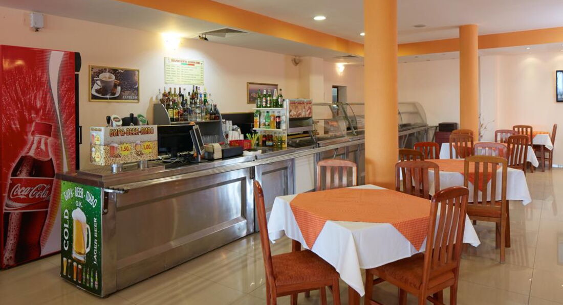 Питание... завтраки нам не очень понравились, однообразно всё, с 7/30 до 10/00, докладывают еду, но как-то порой попадали что толком ничего и нет, пока кофе выпиваешь глядишь... а всё так же пусто, но так попадались раза два... да и завтракали мы часов в 9 - 9/30. Ресторан при отеле отличный!!! Барбекю делают только после пяти дня примерно. Объездили несколько курортов цены в нашем ресторане оказались средние, в каких-то заведениях гарнир отдельно надо заказать, в нашем ресторане не помышляйте об этом... там такие порции, ох, ох, ох) И пробуя в разных (а их около 7-10, на разных курортных зонах Болгарии) ресторанах барбекю, всегда возвращались к нам в отель, ущипцы, кебапчета, за уши не оттянешь (не раз видели как болгары, не проживающие у нас в отеле, ужинали в нашем ресторане) и повар прикольный, посоветует, принесет порой сам, потом подойдет спросит, как нам по вкусу, ли?) Вечером рядом с рестораном играет живая музыка... синтезатор... играет средне конечно, и на 10 день надоедает, но всё-ровно, приятно, особенно сидя на балконе своего номера с бокалом вина) Вокал мужской, редко приходила девушка пела. Днем дети резвились вокруг, пока их родители наслаждались воздухом (а он там великолепный), детишкам давали попеть в караоке или совсем малым понажимать на клавиши синтезатора во время песни, забавно и мило, очень дружелюбный персонал!