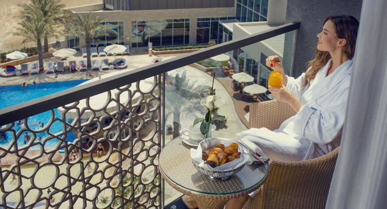 premium plus rooms ( балкон, номери розташовані в бічній частині будівлі, мають вигляд: pool, yas water world & yas ferrari world, yas marina, marina circuit),