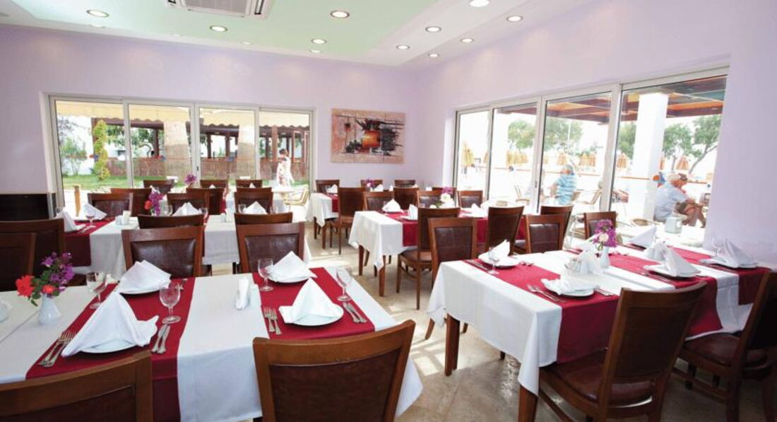 Отель семейного типа,имеет количество номеров чуть более 120. Ресторан отеля каждый день меняет ассортимент еды, персонал очень внимателен к твоим пожеланиям и просьбам. Рядом с рестораном есть зона бара,где можно выпить прохладного пива или местного турецкого сухого вина.