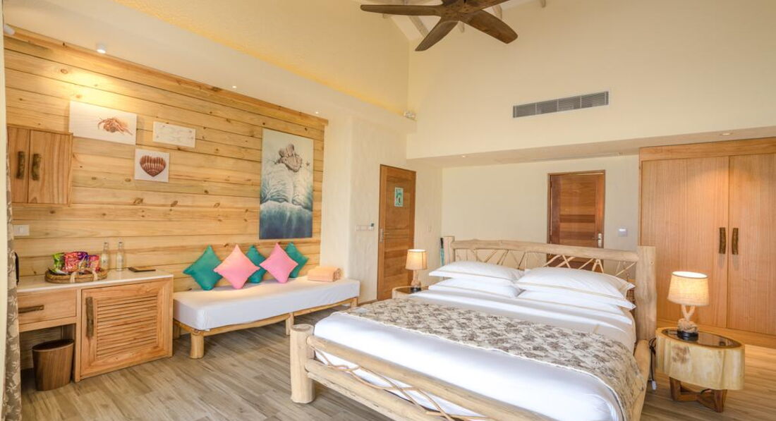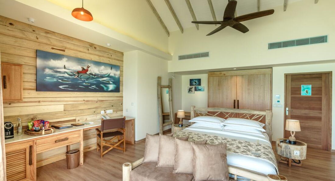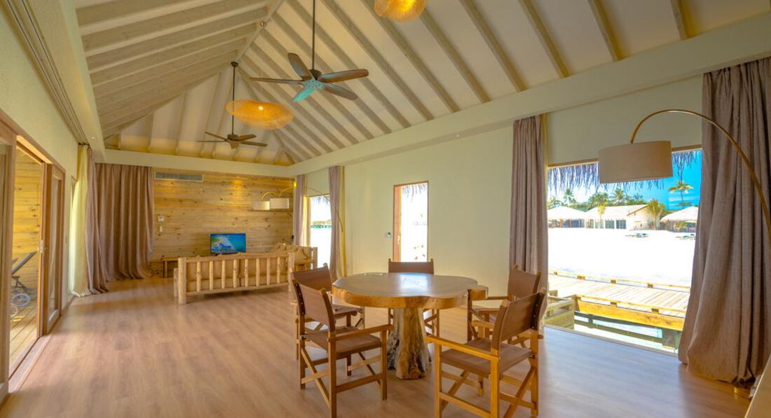 • DOLPHIN VILLA 55 кв.м., вілла розташована на лагуні, двоспальне ліжко з видом на океан, ванна кімната з душовою кабіною, комфортний диван, вид на захід сонця