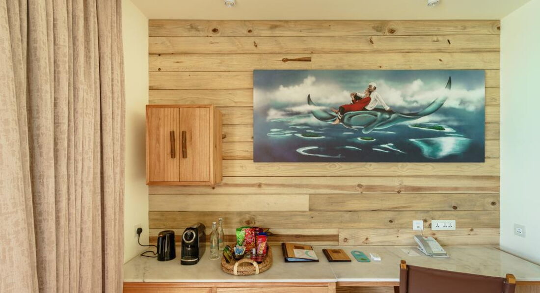 • MANTA VILLA 55 кв.м., вілла розташована на лагуні, двоспальне ліжко з видом на океан, ванна кімната з душовою кабіною, вид на схід сонця