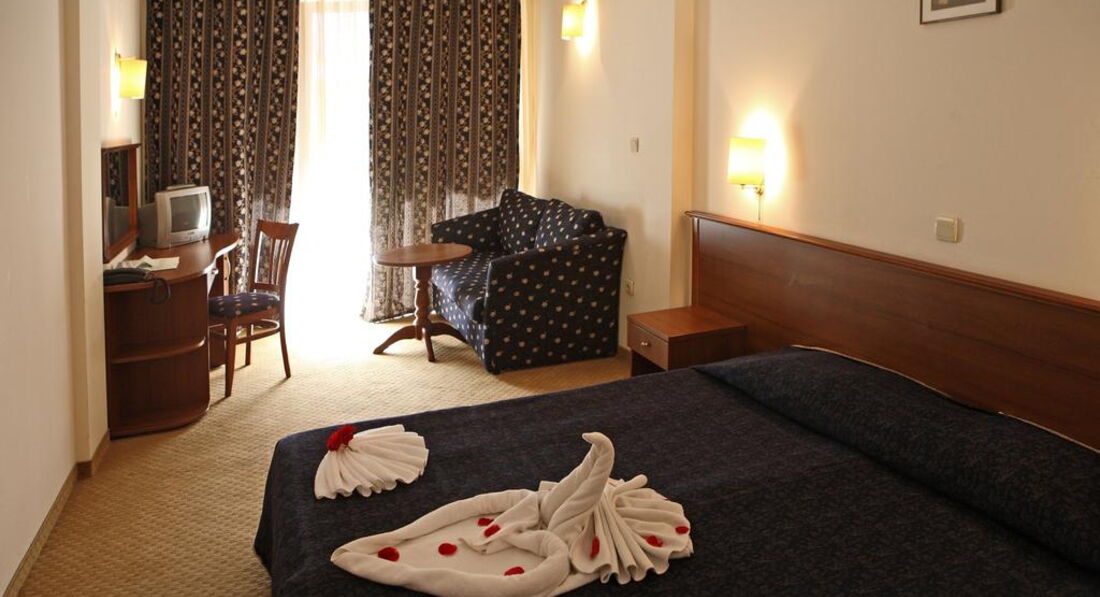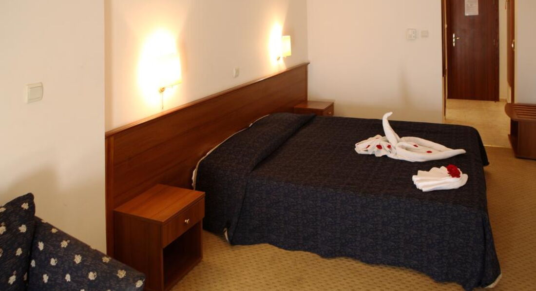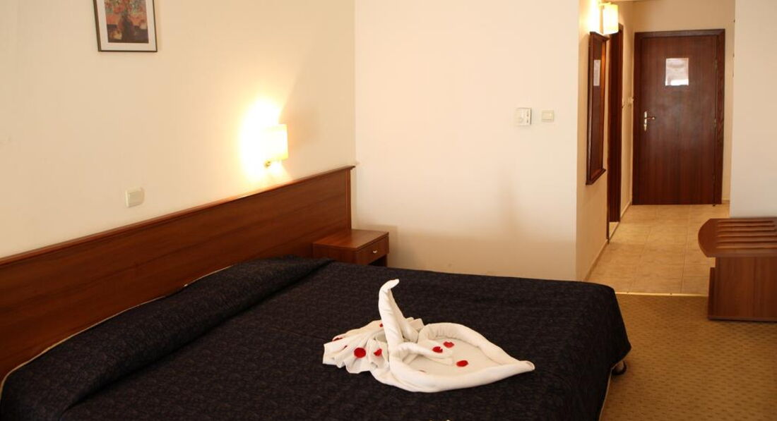 Отдыхала в отеле в начале сентября 2012 г. от туроператора Солвекс. До этого в Болгарии не была ни разу. В турфирме мне продали 2*, но в отеле есть реконструированные номера 3*. Хозяйка меня без всякой доплаты поселила в 3* номер. За что ей огромное спасибо! Номер шикарный,огромный; сантехника тоже шикарная. В номере большая 2-х спальная кровать, диванчик, телевизор-русских каналов около 5,столик, стул, шкаф, в ванной есть фен, хотя в описании отеля нигде об этом не сказано, мыло, 2 шампуня. Балкон у меня выходил на задний двор, поэтому тот фонтан соседнего отеля, о котором много пишут, что он мешает-мне не мешал.