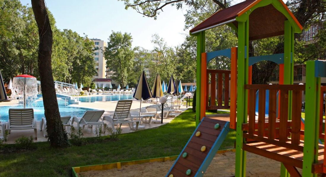 Бассейн большой и чистый, есть детский с грибком, с которого течет водичка, горок нет, анимации тоже. Но в Болгарии и так полно развлечений вне отеля, так что это не проблема. Шезлонгов и зонтиков всем хватало. Есть детский клуб от СОЛВЕКС. Состоит он из 2-х комнатушек, не очень хорошего состояния, запах там какой-то неприятный. Есть 2 русскоязычных аниматора но вялые они какие-то. Парень аниматор еще как-то старается а вот девушка вообще никакая. И близко не сравнить с детс. анимацией Турции или Египта, наши дети не хотели там оставаться.