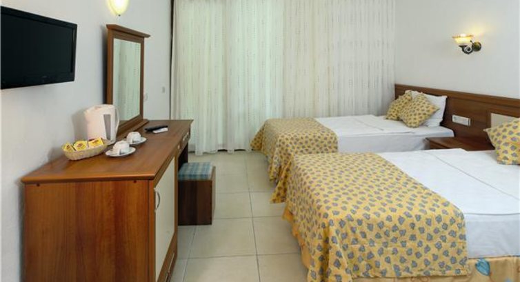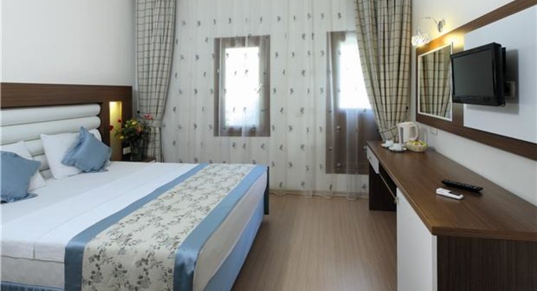 Отдыхала одна в отеле с 13.06-20.06 от туроператора Бриско. В пути сломался автобус, но замена приехала очень быстро. Приехав в отель с еще одной семейной парой сначала дали номера в 8 корпусе, далековато и окна выходили на дорогу. Помог отельный гид Али. В итоге без доплаты номер в 3 корпусе на 2 этаже. Номер стандарт. Плохо работал кондиционер. Мастер пришел сразу, но что-то с ним все равно не так было. Мне было нормально и без него. Комаров в моем номере не было, в других корпусах были. Кормили хорошо. Фрукты по сезону. Выпечка/тортики. Мороженое Рыба,мясо,курица, овощи..... До пляжа 5 минут ходьбы. Сначала песок, потом галька. Лежаки, зонты платные по 8 лир. Заход в море немного каменистый. Купалась в кораллках. Вода была прохладная. Дети купались с воплями. Бассейн понравился, хлорка не чувствовалась. Вай фай ловил в лобби и кое где в ресторане. В отеле много немцев, народ не очень приятный. Сотрудники мало кто понимает русский, но все дружелюбные. Анимация по вечерам только детская однообразная на немецком. После разные выступления типа артистов. Природа вокруг очень красивая. Горы с трех сторон и море. Ездила в Памуккале , летала по параглайте (это круто). Отдых в целом удался.