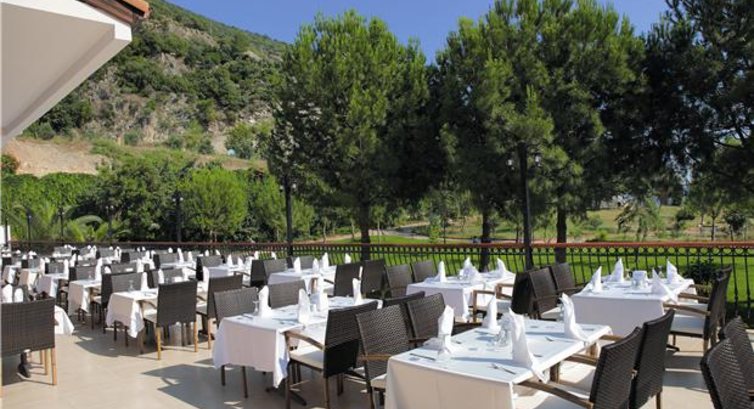 Бари та ресторани: головний ресторан (дитячі стільці), лобі-бар (10:00-24:00, після 24:00 - платно), 2 бари біля басейну (10:00-24:00, після 24:00-платно) ; 10:00-24:00). Ресторан A la Carte: турецька - платно, за попередньою резервацією.