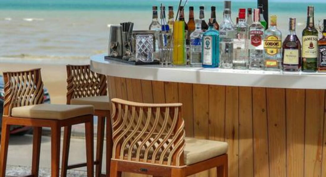 Громадський піщаний пляж (кам'яний захист набережної, сходи в морі; 200-300 м у бік Паттайї – пляж стає ширшим). Парасольки, пляжні стільці – платно (200-300м від готелю у бік Паттайї, 3 хв ходьби). Пляжні рушники – безкоштовно. готель на 1-й пляжній лінії