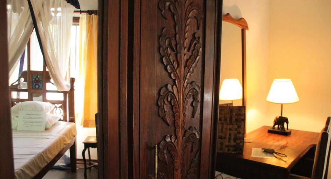 Garden View Room (Два наші номери, побудовані в 2012 році, мають вид на сад з другого поверху. Вони наші найменші і, отже, наші найдешевші номери. У номерах немає відкритого простору, але дуже тихо через розташування. Номери оформлені в традиційному стилі Zanzibarian, з красиво вирізаними меблями з темного дерева, ліжка з балдахіном.)