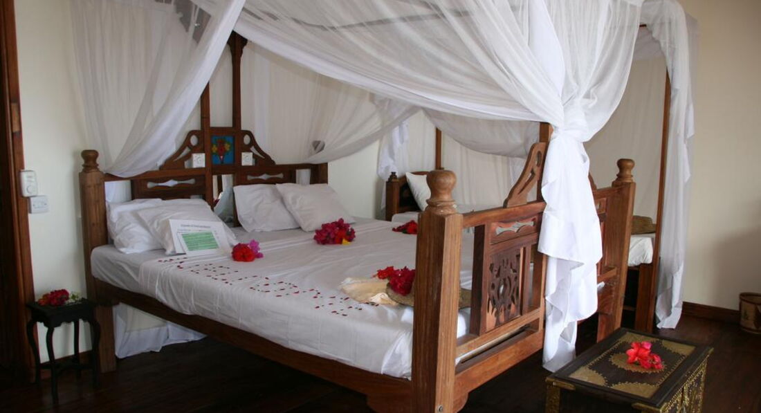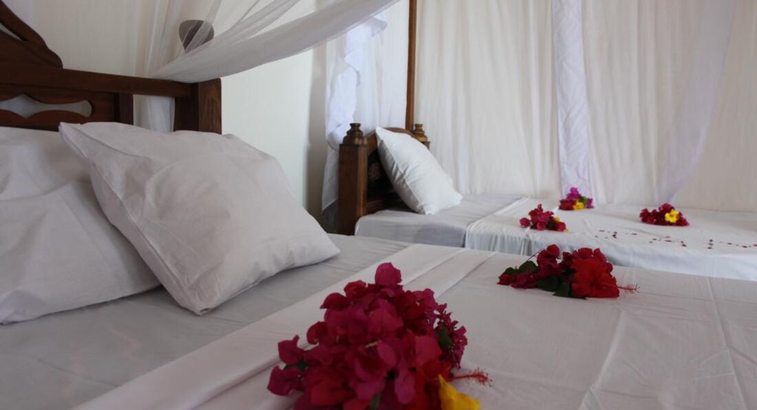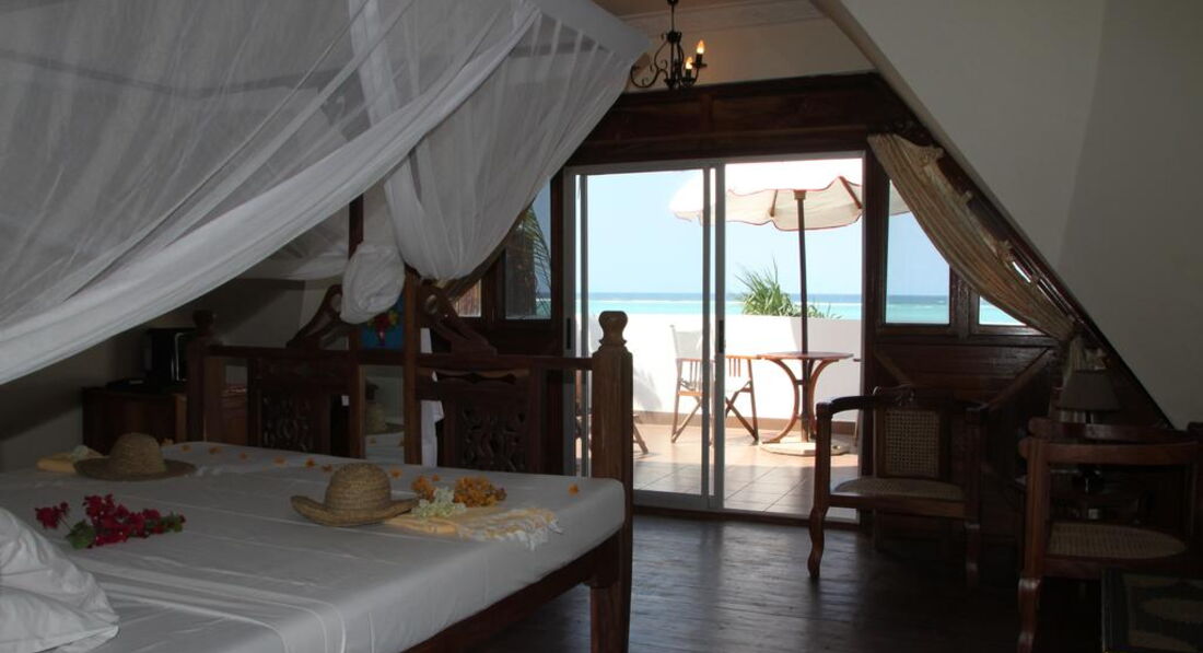 Sea View Room (Ці дві нові кімнати, з ремонтом 2012 року, пропонують найкращий варіант, якщо ви хочете, конфіденційність і приголомшливий вид на океан. У номерах є балкони з видом на океан, обладнаний дерев'яними шезлонгами. Номери просторі та оснащені холодильником та кавоваркою). Номери оформлені в традиційному стилі Zanzibarian, з красиво вирізаними меблями з темного дерева, ліжка з балдахіном.