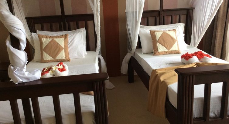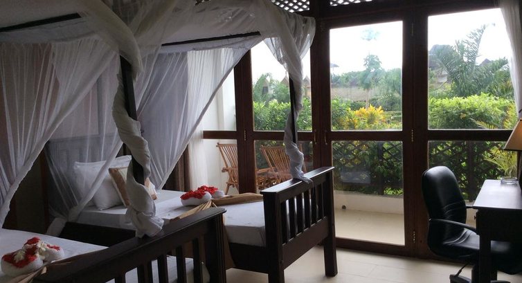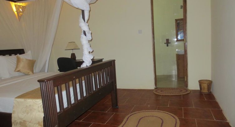 Deluxe Room (Кожен люкс з видом на сад. Обладнаний мармуровою підлогою, що імпортується з Єгипту, гарною ванною, бавовняною постільною білизною та місцевими дерев'яними меблями із Занзібару.)
