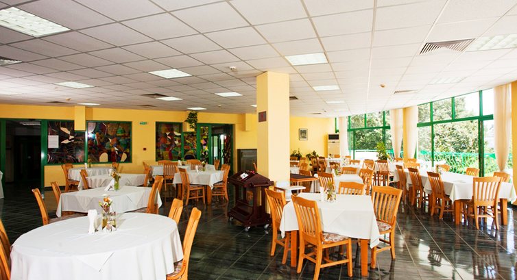 Питание разнообразное, т.е. по 3-4 вида каждого блюда, хотя практически каждый день похожие. Но если за одно питание не набирать все блюда сразу, то разнообразие каждый день гарантировано :). Ребёнок тоже всегда что-нибудь да находил по своему вкусу, голодным никто никогда не ходил. Куриные-мясные блюда, салаты, супы, гарниры и десерты с фруктами и мороженым. Столов в ресторане хватало на всех (лишние правда столы не стояли никогда, но всегда можно было найти освободившийся либо в закрытом зале, либо на террасе), постоянно одни люди сменялись другими. Еды хватало на всех.