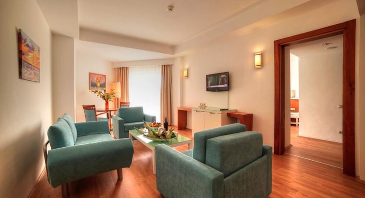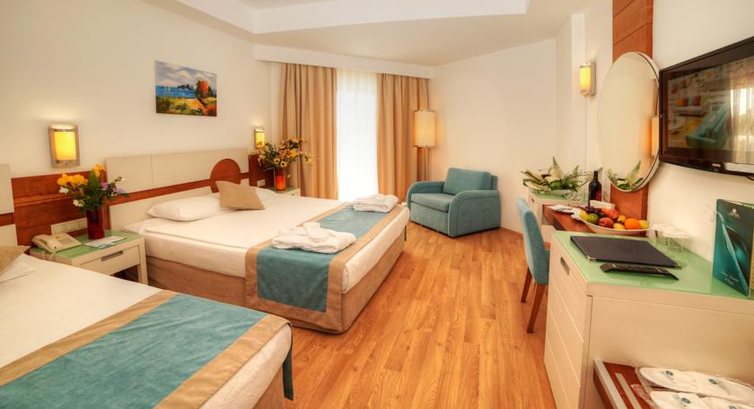 Номер с очень современным дизайном. Мебель в хорошем состоянии. Есть сейф. В ванной все принадлежности для ванной. В наборе есть все вплоть до станка для бритья. Полотенца как новые тоже и про постельное белье. Кондер работал безотказно. Телевизор плазма на стене но по каналам ничего не скажу и так развлечений хватало. Территория отеля красивая и ухоженная. Много цветов и деревьев все ухоженное. Есть маленькие водопадики. Мы очень любили гулять по этому оазису. Есть хороший большой открытый бассейн и небольшой бассейн с горками. До пляжа пару минут по территории отеля. Пляж чистый. Галька. Лежаки до десяти утра найти не проблема потом сложнее. Все и лежаки и зонтики и матрасы в приличном состоянии. Вода в море очень чистенькая. Вообще расположение отеля удачное. Недалеко есть рынок там брали сувениры. За отелем вид на горы а перед отелем вид на море. Отдыхающих с детишками очень много. Тут все условия им весело есть чем заняться. Русскоговорящие детские аниматоры. Есть детский клуб. Для взрослых тоже разные конкурсы, вечером шоу и поездки в клуб. Есть дискотека и в самом отеле. Я считаю что с отелем нам очень повезло. Хорошо что нашли отличного турагента его зовут дмитрий кукин найти его можете по имени через поиск друзей вконтакте. И стоимость туров у него самая низкая в интернете. Дешевле мы не нашли. Ну и в общих чертах о питании в отеле. Вообще претензий нет. Еда вся свежая. И достаточно разнообразная. На обед и ужин мясо и рыба на гриле. На завтрак могу порекомендовать очень вкусненькие свежие оладушки. В течении дня можно везде перекусить. Снек бар, мороженное, разные сладости. Ну и подытожу. Отель хороший может на 100% на пять звезд и не тянет но по соотношению цена качество отлично.