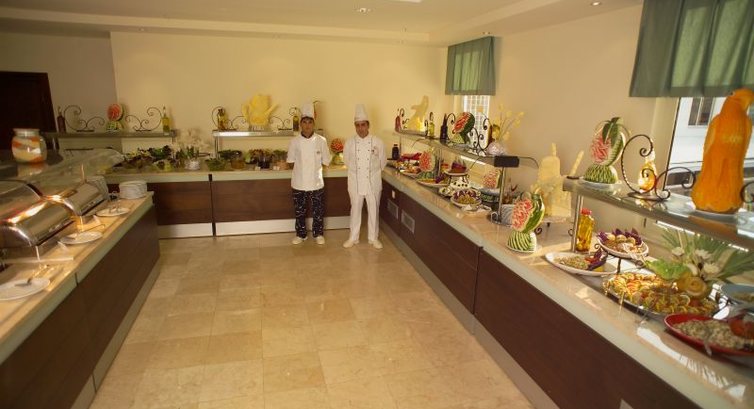 Отелю даю твердую 4. В наш заезд (а возможно будет и на протяжении всего сезона) работади не все бары, два были закрыты. Бар возле столовой и возле пляжа. Бар у столовой не так критично, а вот тот что ближе к морю, очень не удобно. За напитками приходится идти к амфитеатру, хотя для кого та не так принципиально. Про еду; мясо(говядина, баранина) не было на протяжении всего нашего заезда, рыба так-же отсутствовала, пицца вкусная, печеный картофель в фольге с наполнителем (колбаса, сол огурцы, оливки, сыр), ну и голодным не будешь! Две горки, три бассейна. Если есть с чем сравнить (если ездили более лучшие пятерки), то будет на 4, если не с чем сравнивать, то отель отличный.